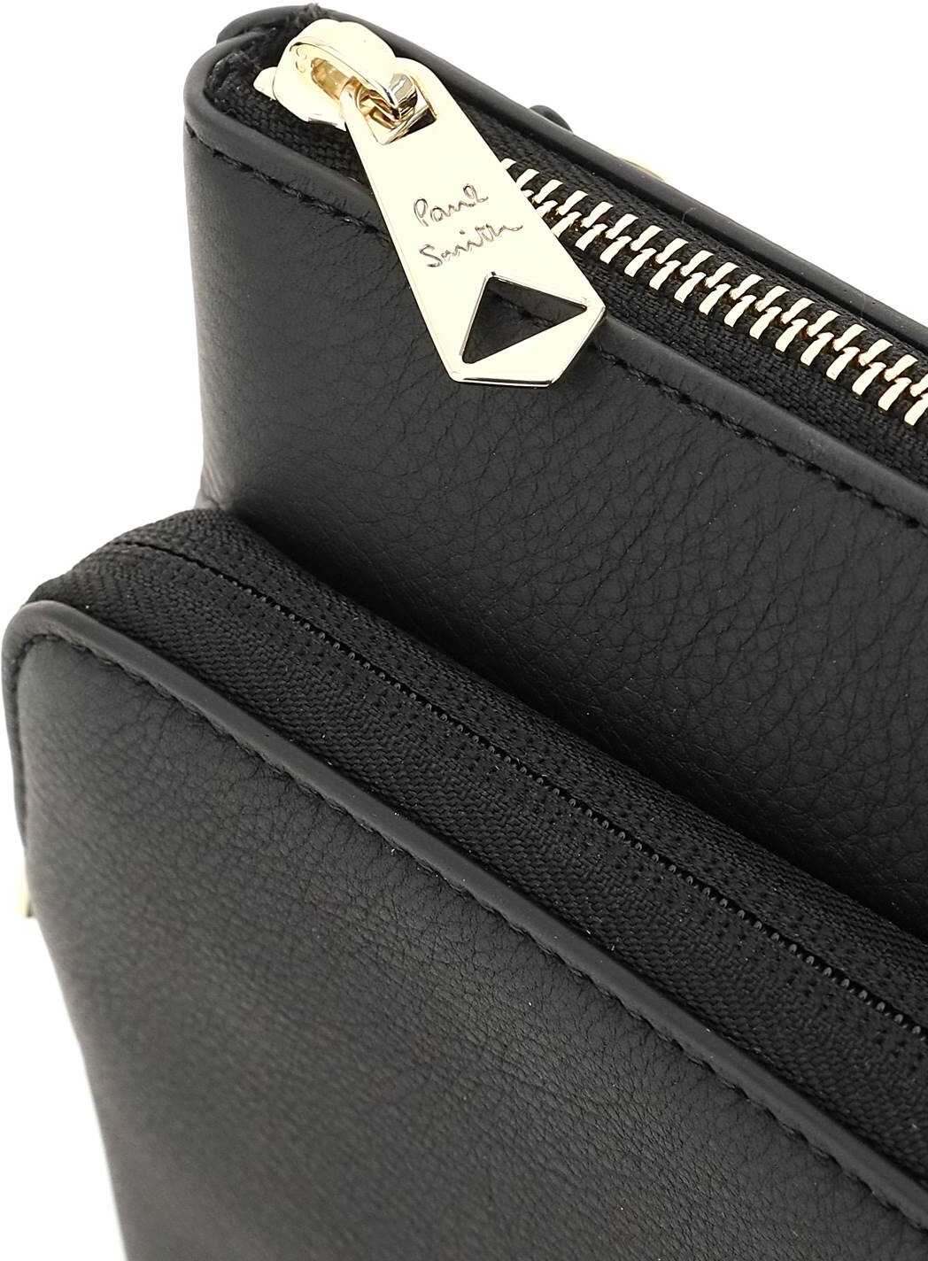 Paul Smith document case crafted in grained leather and embellished on front with the classic "Signature Stripe" insert and the gold-tone logo print. Two compartments with zip closure, both with fabric lining. One inner zipped flat pocket and two inner small open flat pockets. Detachable wrist handle. Gold-finished metalware.