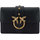 Calfskin Love One Simply Micro Shoulder Bag by Pinko, front closure via magnetic flap, removable chain shoulder strap, iconic Love Birds buckle embossed on front, dual interior compartment, interior zipper pocket, flat card pocket, iconic tone-on-tone embroidered brand monogram on back, single interior compartment.