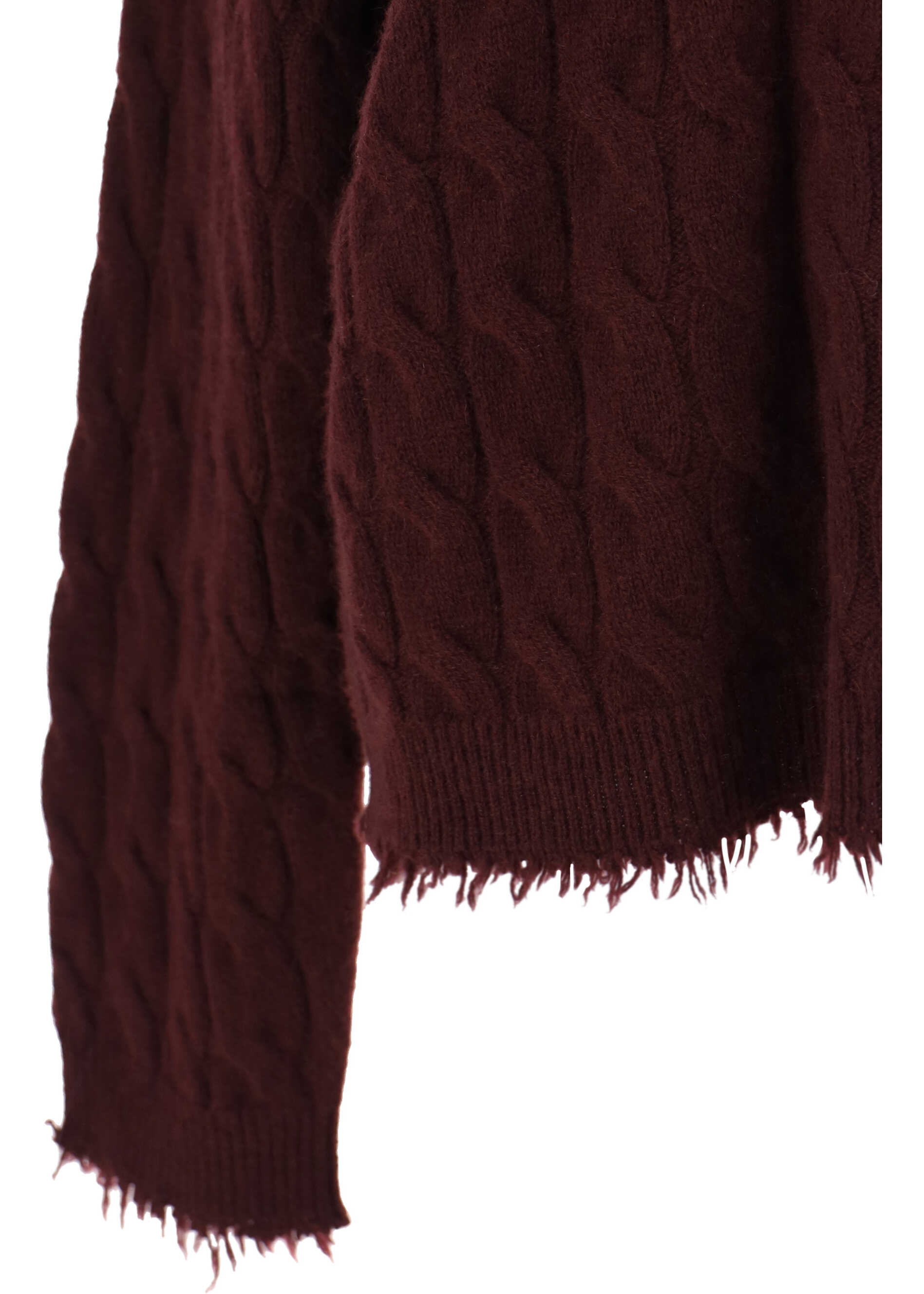 Cashmere Sweater by Re/Done, V-neck front, all-over repeated braid knit weave, frayed ribbed cuffs, frayed ribbed hem, monochrome pattern, regular fit.