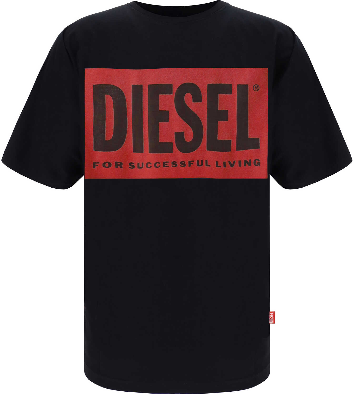Cotton T-Shirt by Diesel, ribbed crew neck, contrasting iconic brand monogram on front, monochrome pattern, regular fit.