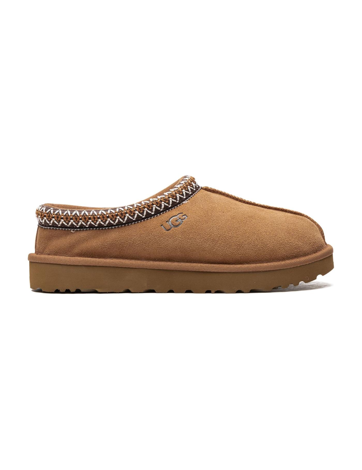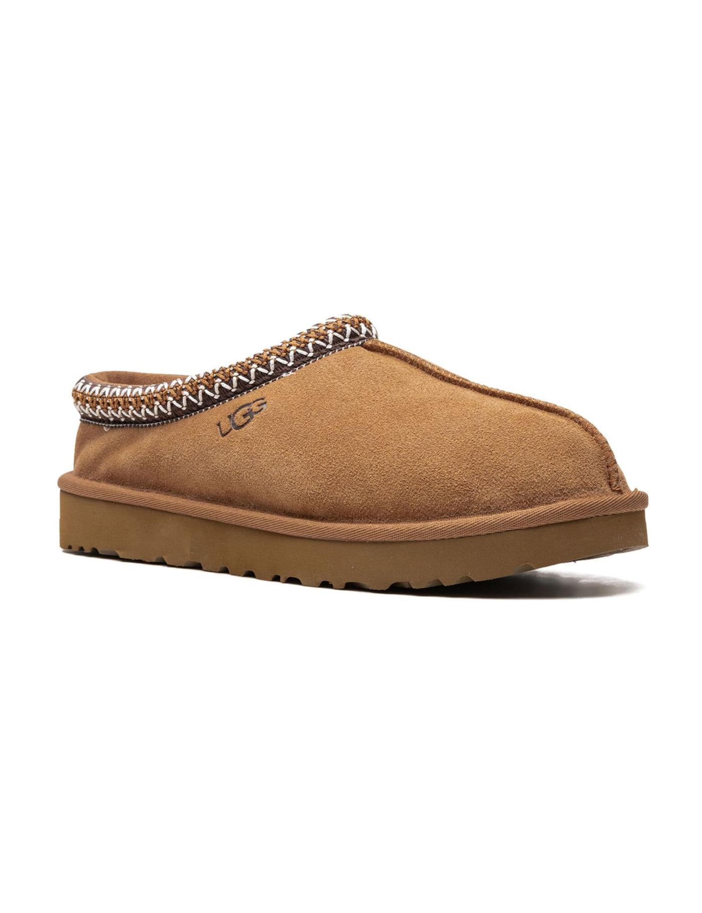 UGG's celebrated Tasman slippers are granted a classic chestnut brown hue. They're crafted from a supple suede outer, lined with a soft shearling lining for a cosy sensation. An exaggerated rubber sole underfoot makes the versatile pair suitable for both indoor and outdoor wear.