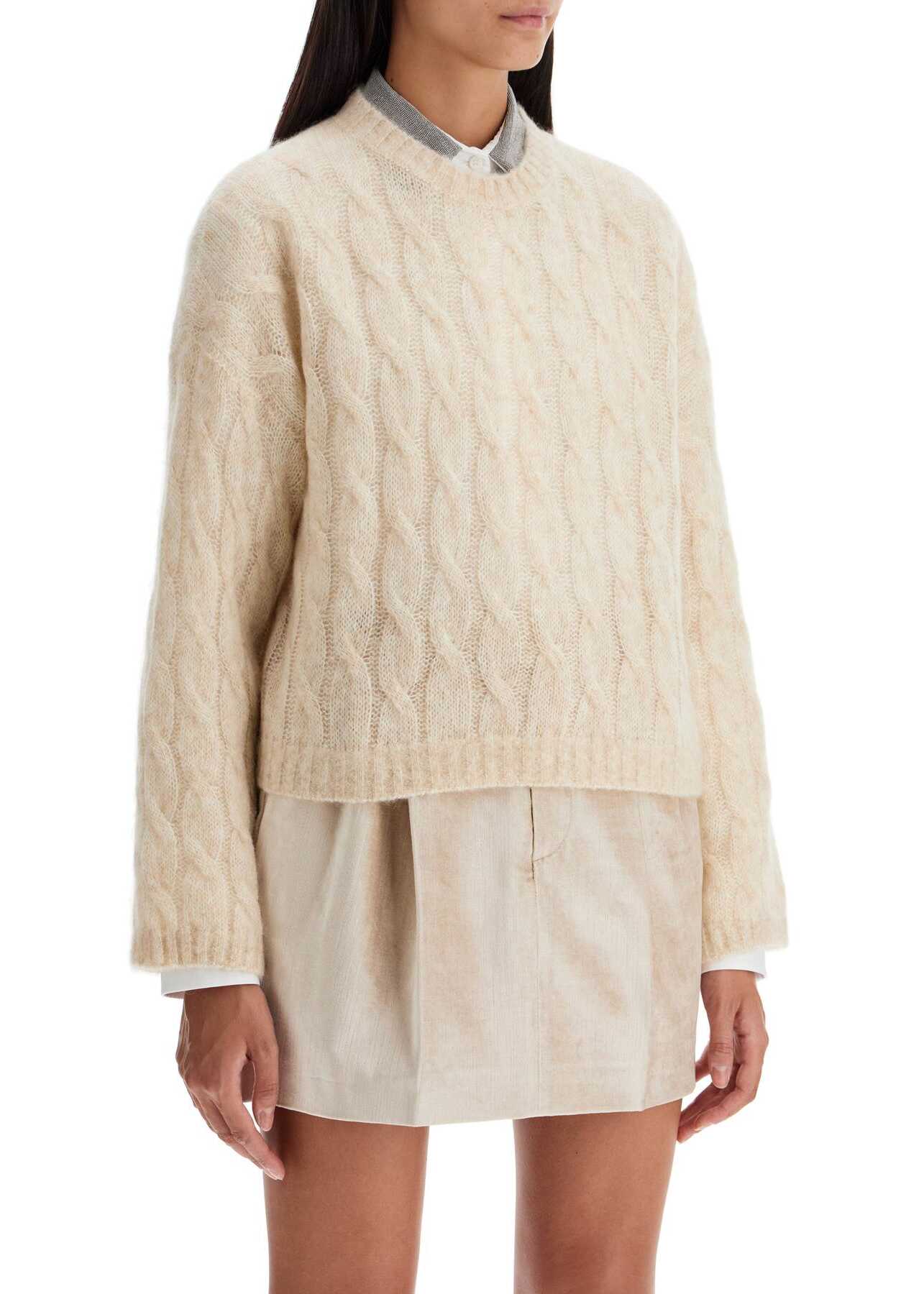 This Brunello Cucinelli crewneck sweater is made of soft wool and mohair yarn with a short, boxy cut. Adorned with a Monili decoration at the back of the neck, the garment is finished with flat ribbed edges. The model is 177 cm tall and wears size XS.