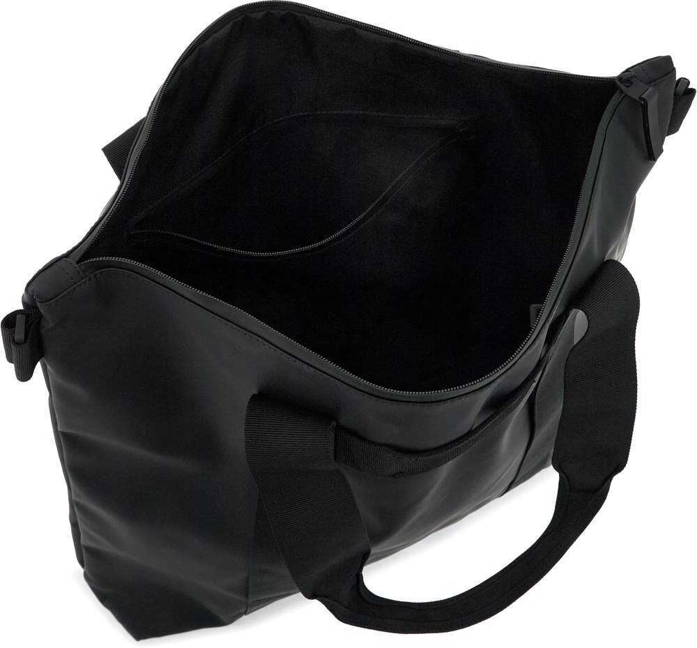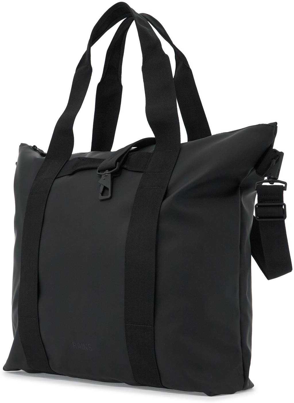The RAINS tote bag is made of the characteristic waterproof technical fabric with double handles and an additional adjustable shoulder strap in ribbon. The top closure features a heat-sealed zip, while the interior is lined with technical canvas and includes a zip pocket. It also has side handles for added convenience.