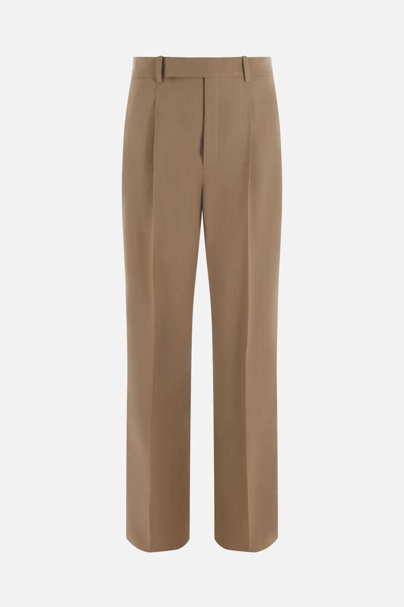 Saint Laurent's wide-leg pants crafted in beige wool. Featuring button / hook-and-eye / zip closure, belt loops, side pockets, back welt pockets and central pinces. Unlined interior.
