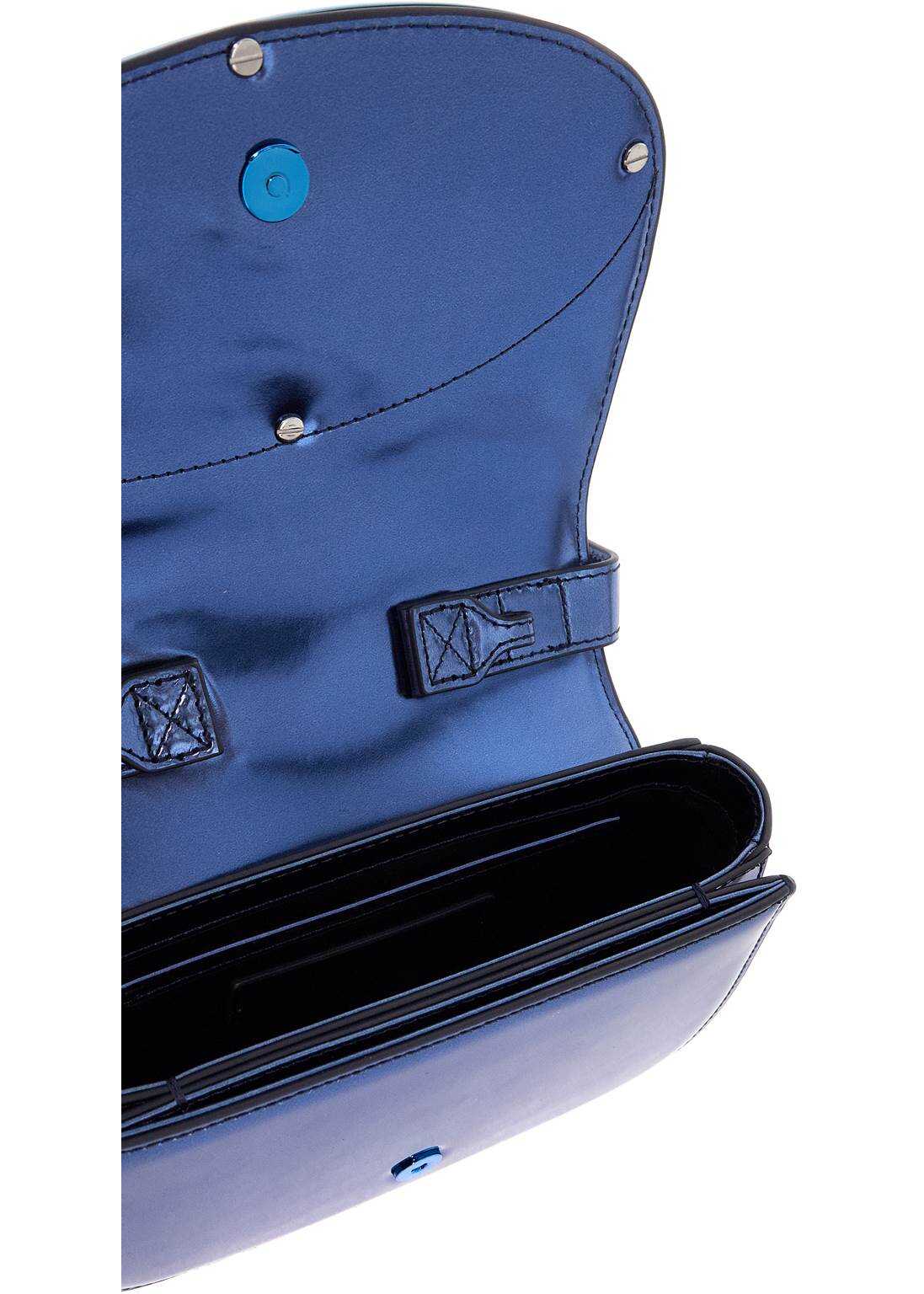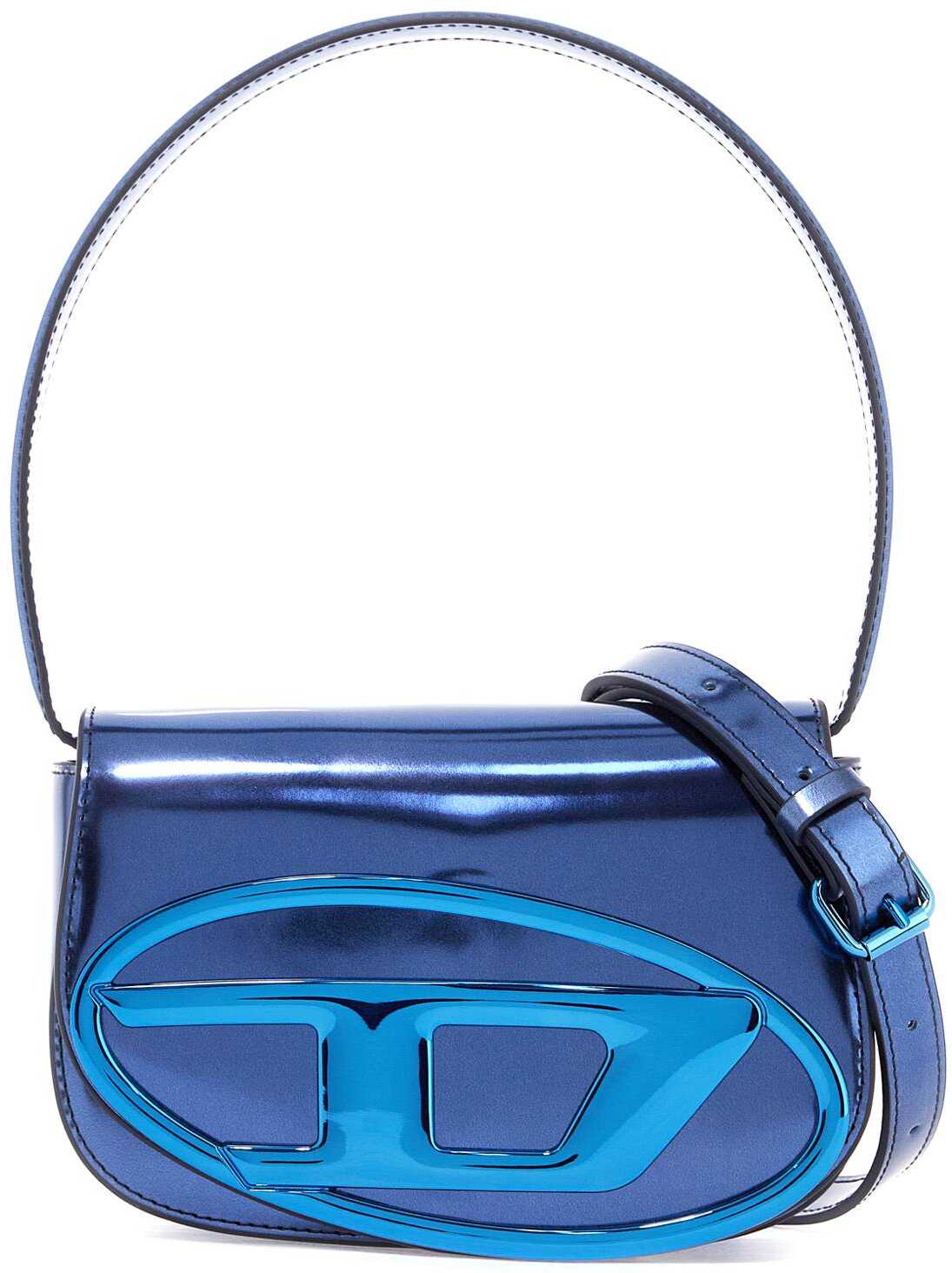 The Diesel 1DR shoulder bag is made of iridescent material and features the Oval D logo on the flap, plated in matching color as the chain strap. It has a magnetic closure and a fabric interior with a main compartment, an open flat pocket, a gusseted pocket, and a slot pocket. It also comes with an adjustable additional strap.