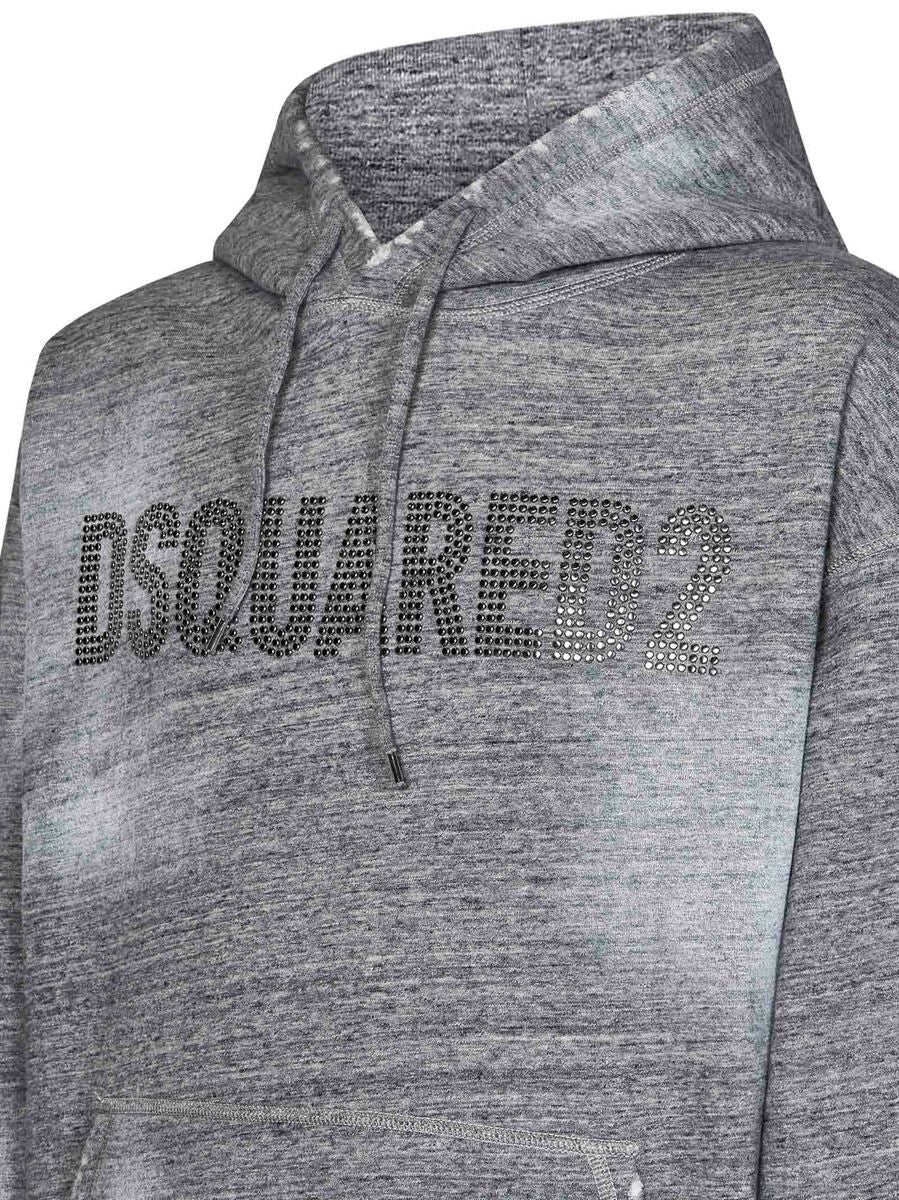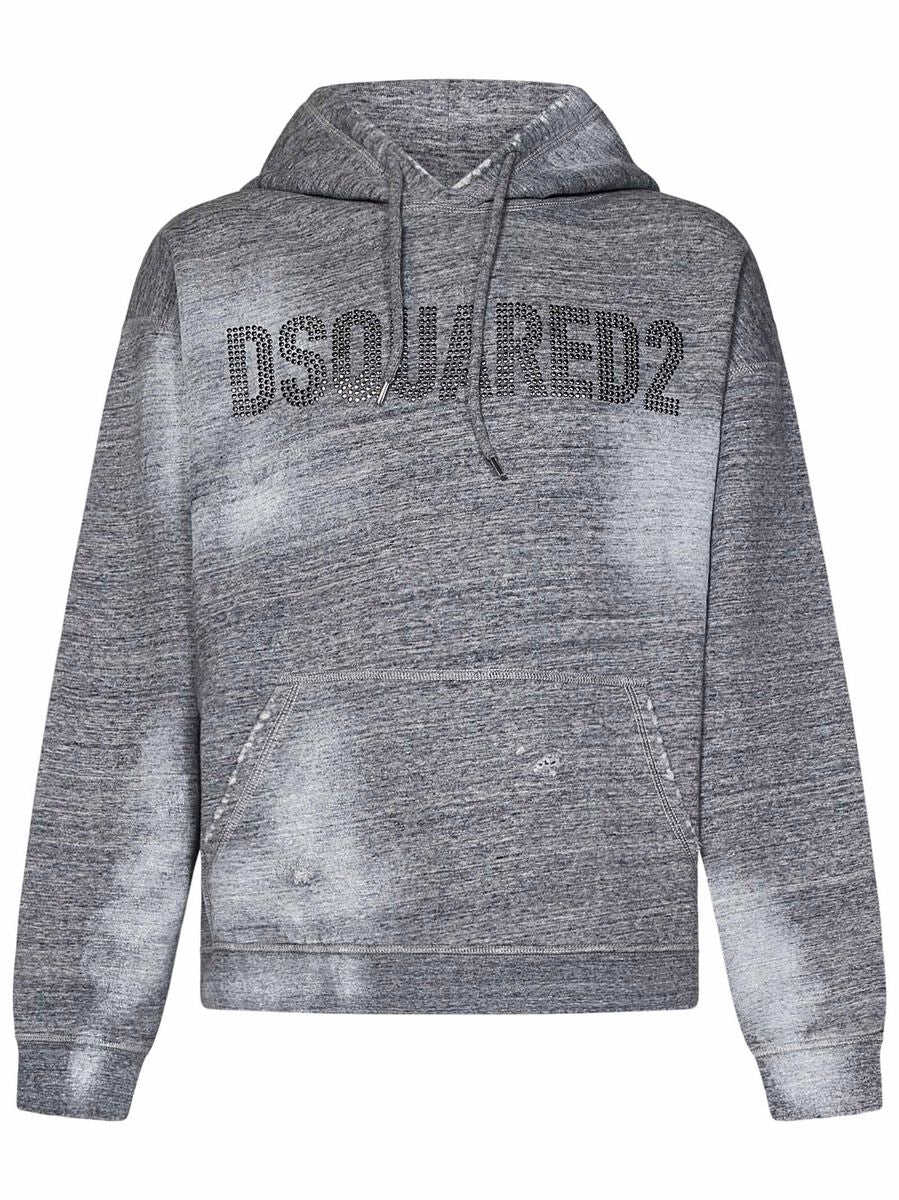 Grey cotton sweatshirt from DsQuared2 featuring long sleeves, hood, frontal kangaroo pocket, logo and regular vestibility.