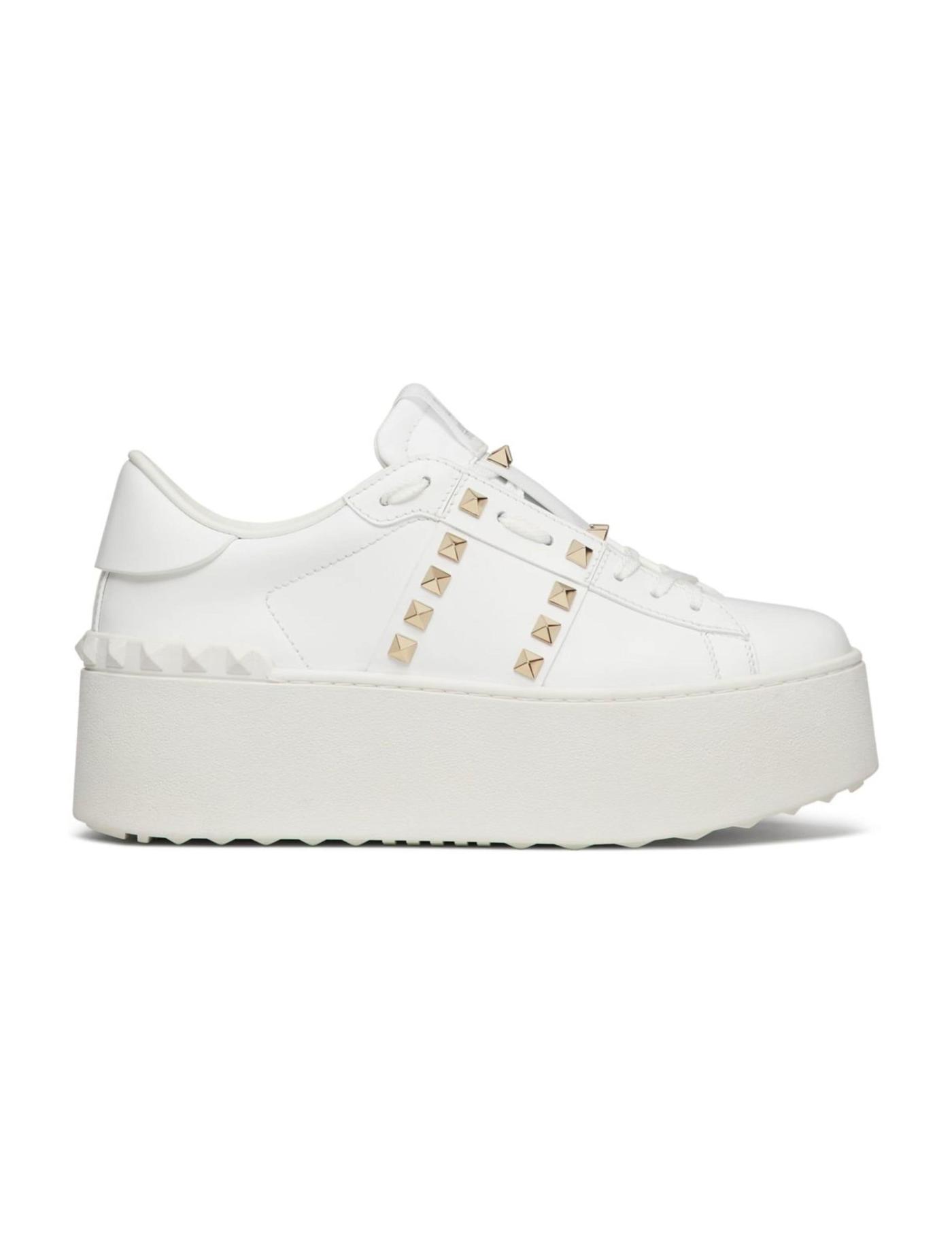Boasting a retro aesthetic, these Valentino Garavani sneakers are enhanced by signature gold-tone studs at the sides and tongue. Boasting a smooth leather construction, they are complete with a high platform sole.
