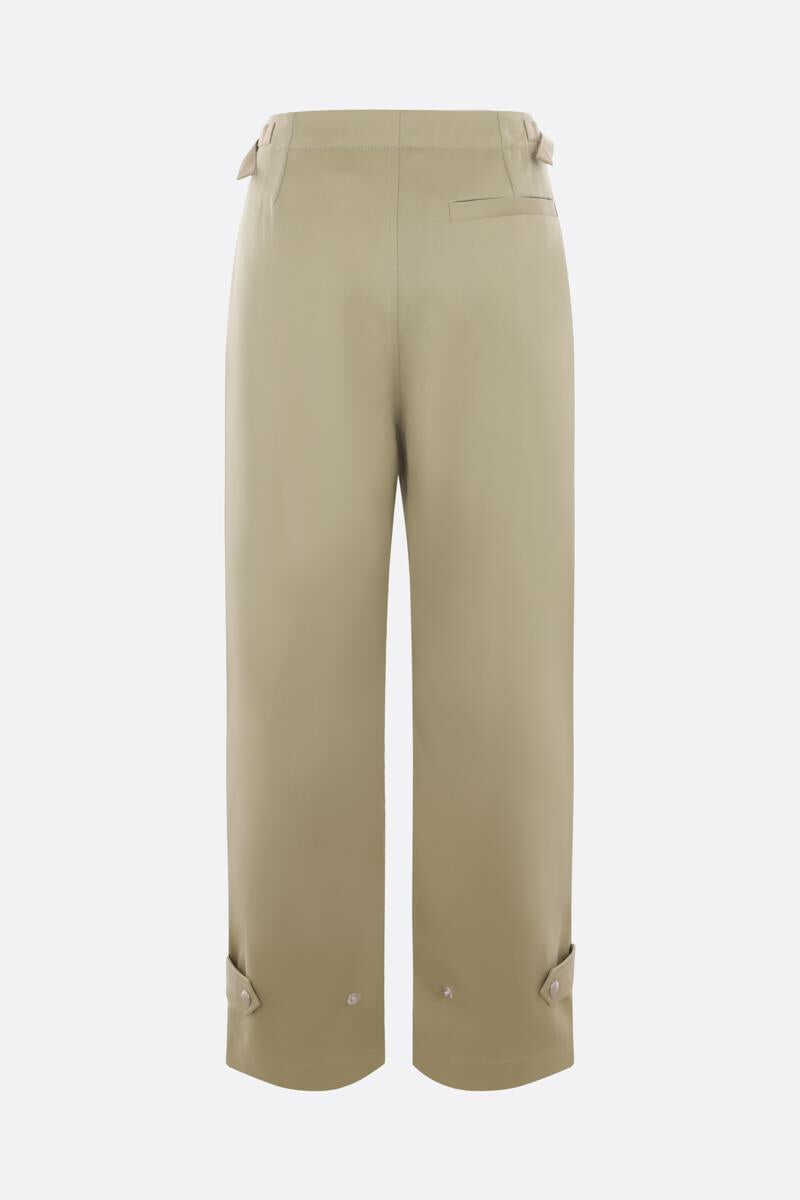 Burberry's wide-leg cargo pants crafted in sage light green cotton. Featuring button / zip closure, belts at waist, multiple pockets, front pinces and adjustable tabs at hem.