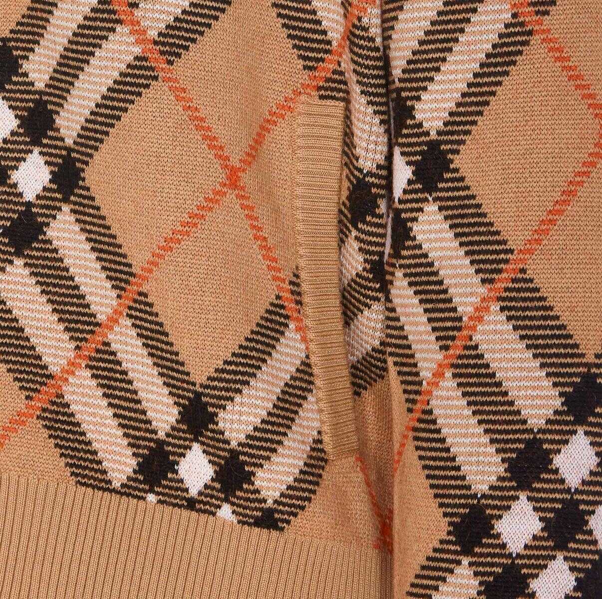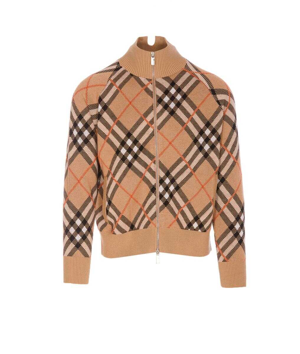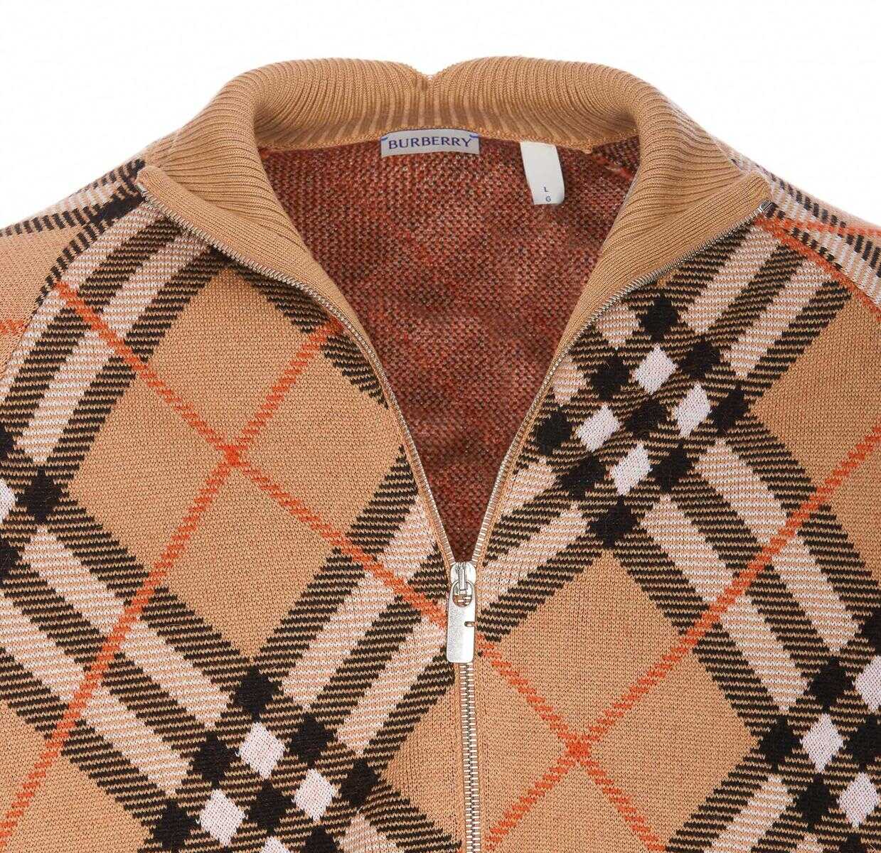 Burberry Sand Es24 Zip Sweater, High Neck, Long Sleeves, Check Motif, Pockets, US SIZE
