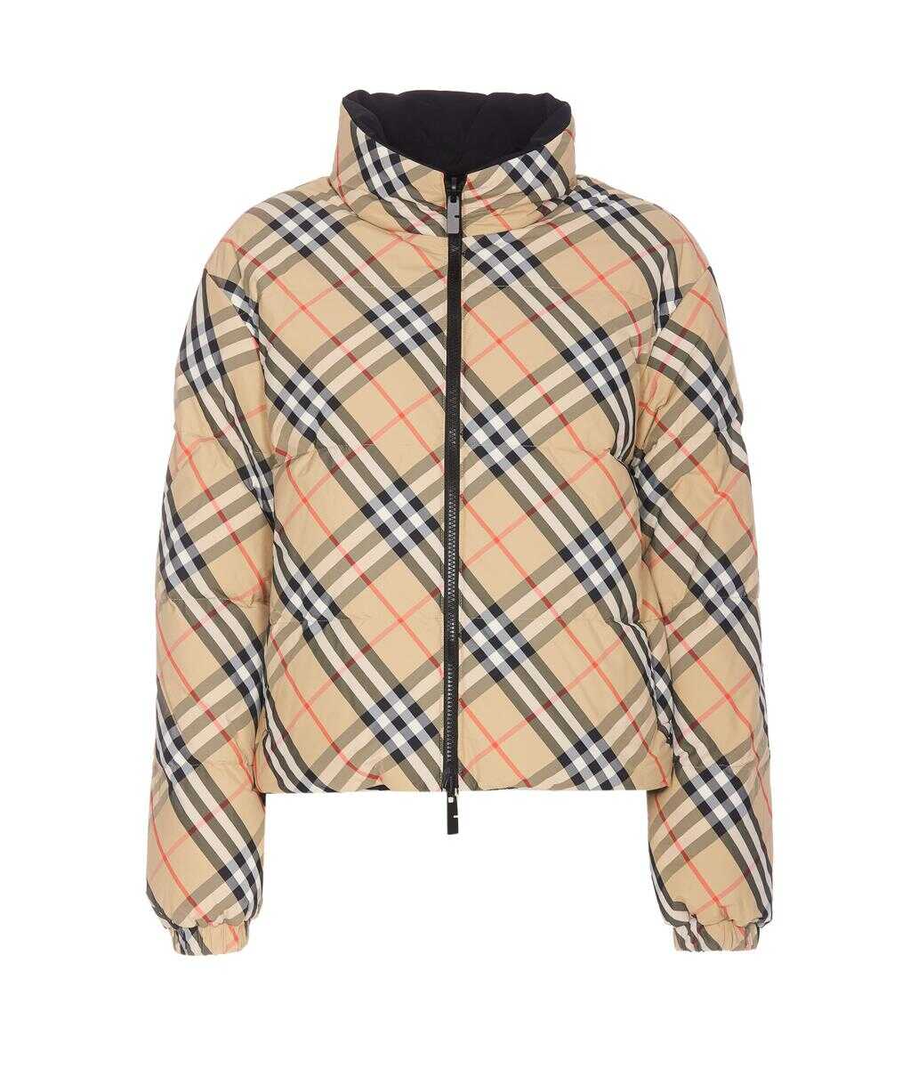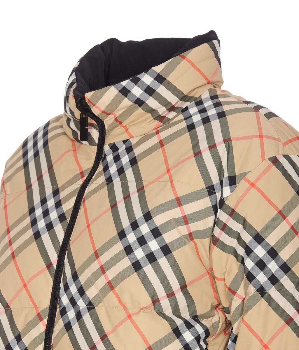 Burberry Sand Down Jacket With Frontal Zip Closure, Frontal Zip Closure, Lateral Zip Pockets, High Neck, One Side With Check Motif, One Side With Equestrian Knight Design Logo, Inner Hood Detail, Elasticized On Cuffs, US SIZE