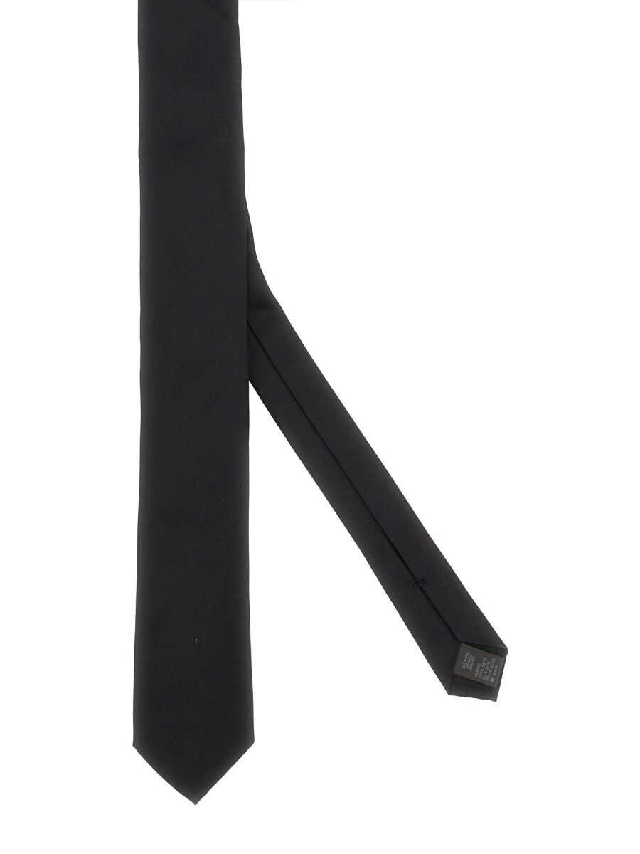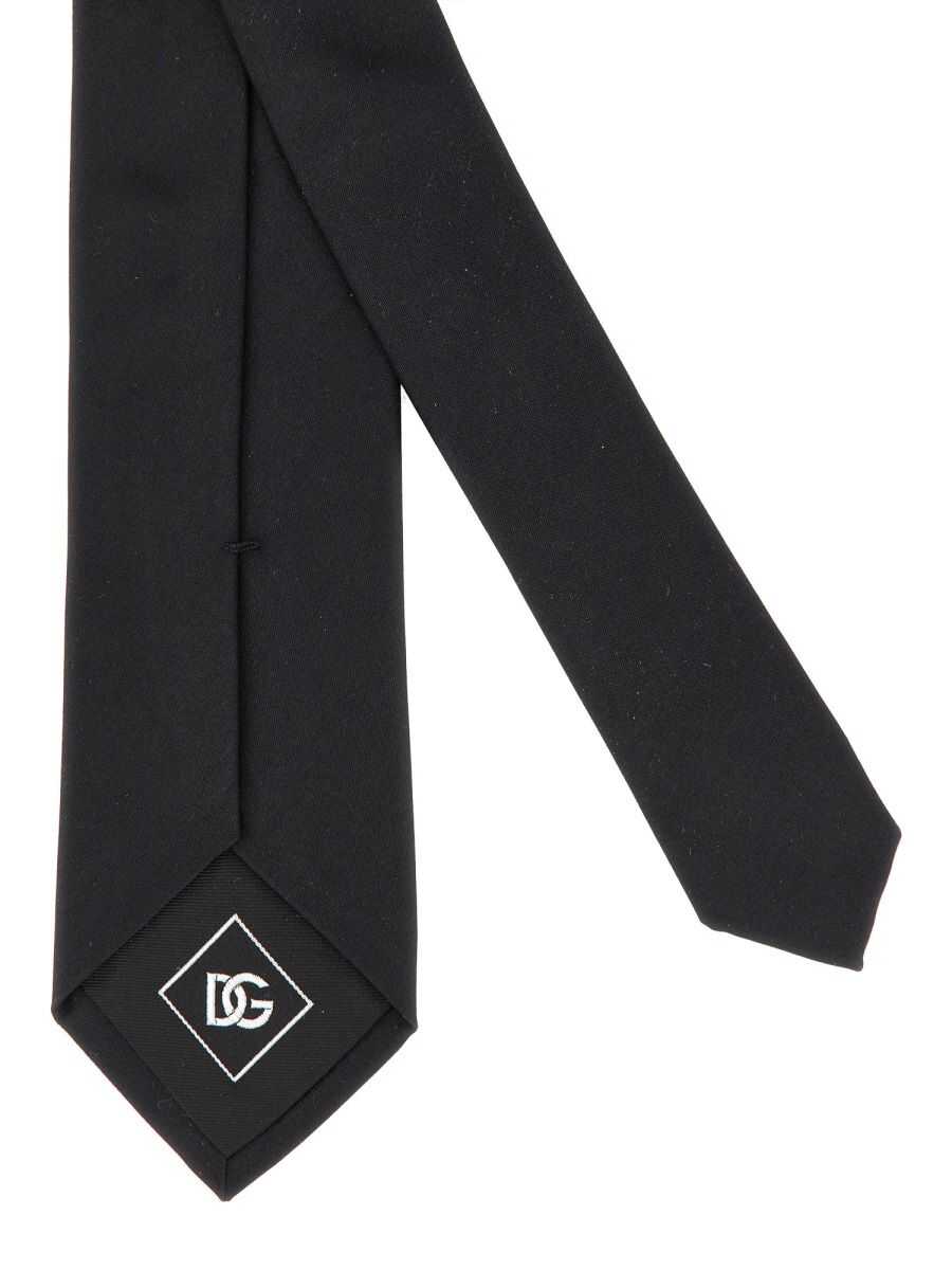 Black silk tie from Dolce&Gabbana featuring pointed tip and adjustable fit. Size Type: Unique