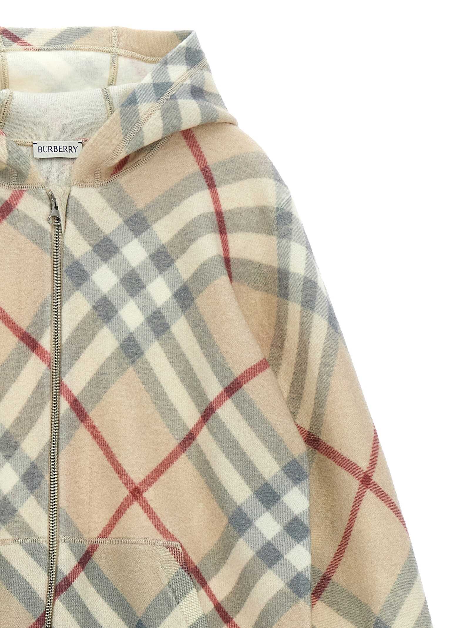 Check-hooded cardigan