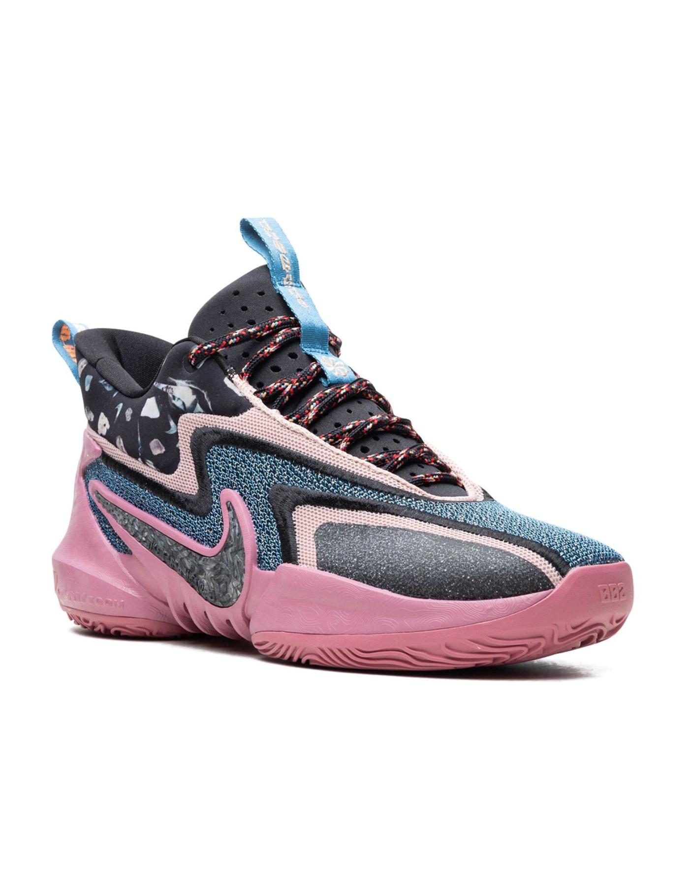 In a black and pink colourway, these Cosmic Unity 2 "Precious Gems" sneakers by Nike are named after the gemstone print on their padded collar. Designed with sharp lines throughout the upper, they sit atop a full-length Air Zoom Strobel unit and a rubber outsole with rippled patterns.