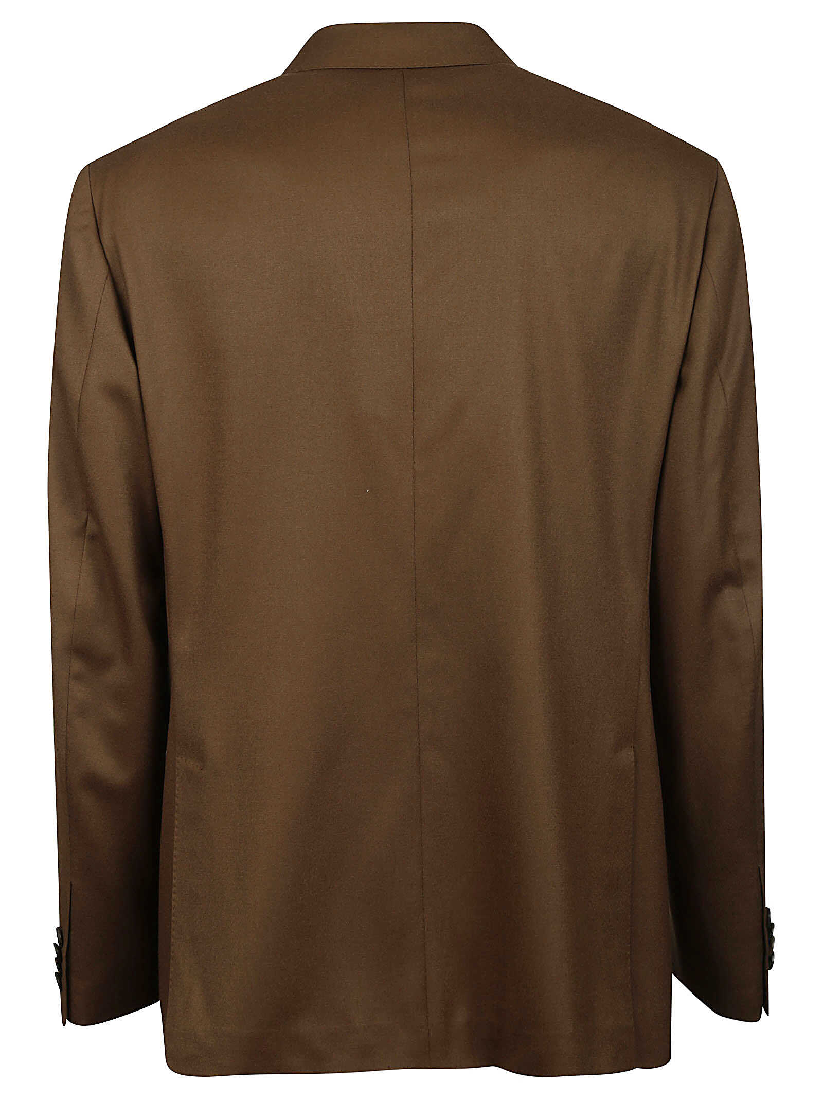Caruso Double-breasted jacket in brown wool, peak lapels, flap pockets, breast pocket, side slits.