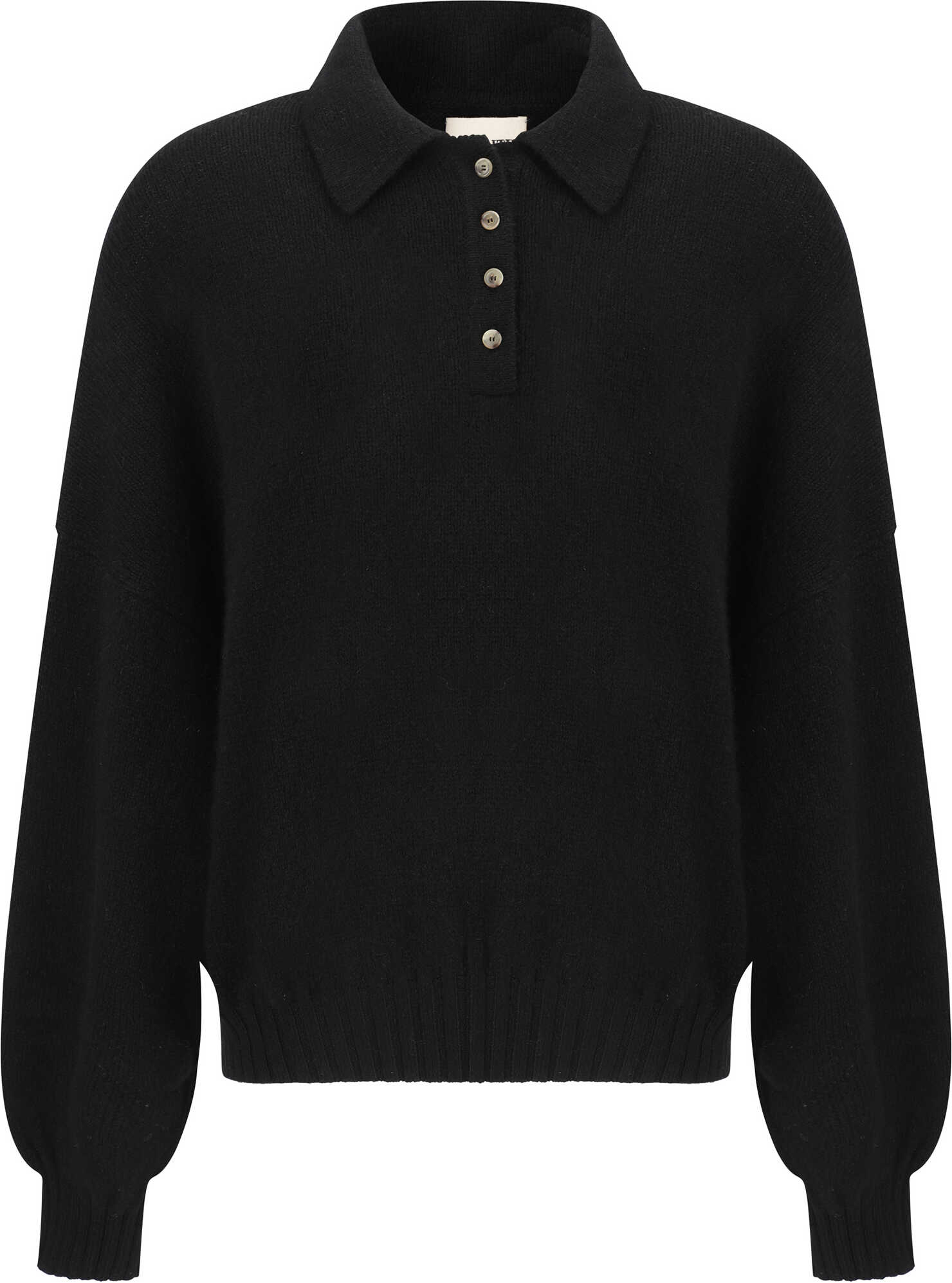 Cashmere Rene Sweater by Khaite featuring classic collar, front buttons, wide sleeves, ribbed cuffs, ribbed hem, monochrome pattern, oversize fit.