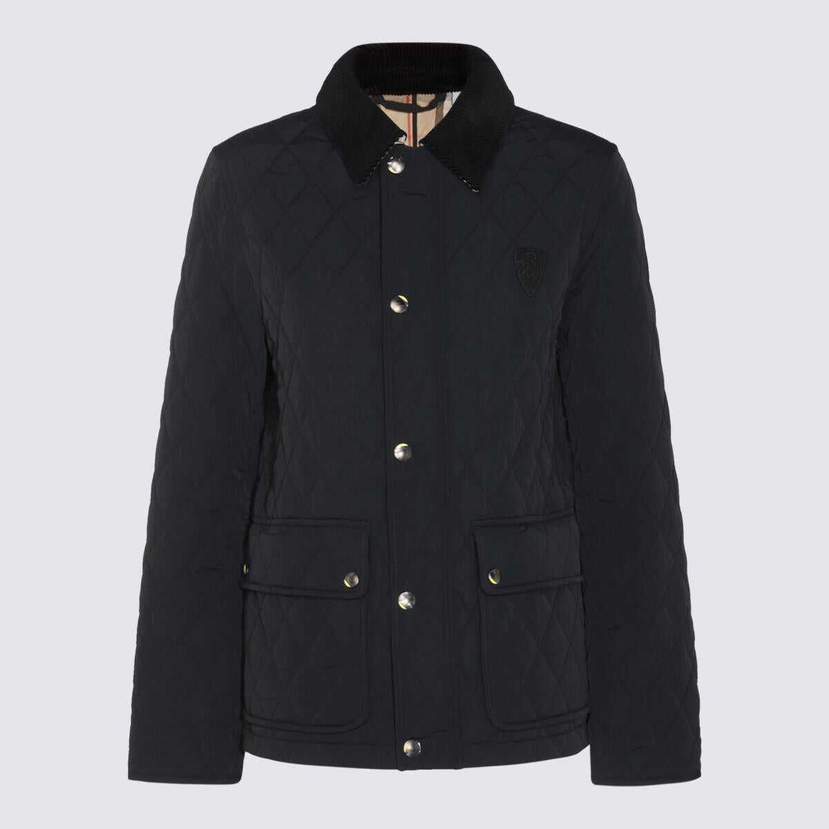 Black down jacket from Burberry featuring long sleeves, buttons fastening, pockets and regular vestibility.