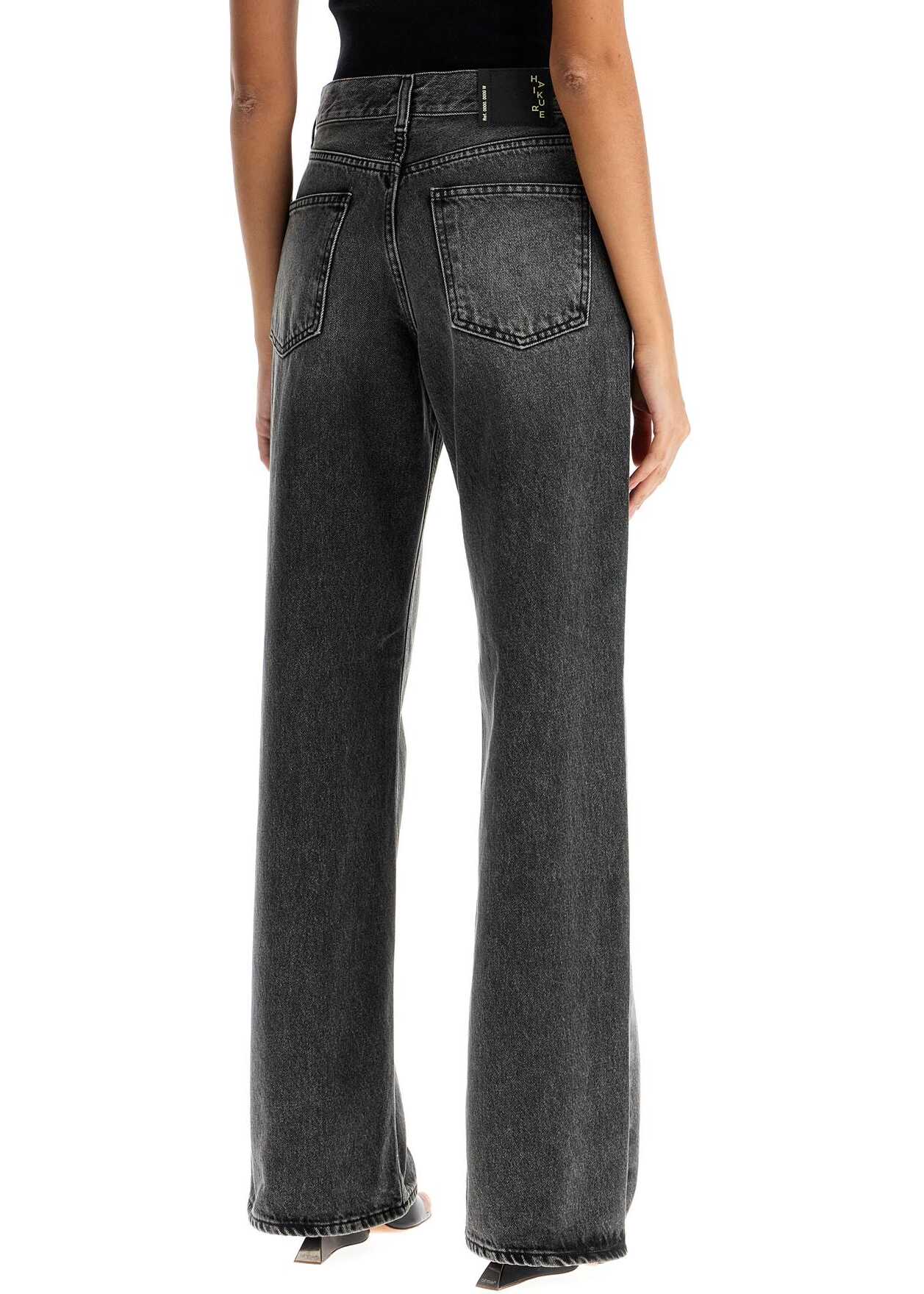 Haikure's Korea jeans are made from pure cotton denim with a dark vintage wash, featuring a classic five-pocket design and a straight regular fit. They have a hidden zip and button closure, belt loops, and a branded jacron patch on the back waistband. The model is 177 cm tall and wears a size 26.