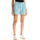 Homme Girls relaxed fit shorts, made of pure cotton Oxford with an all-over striped pattern and printed logo on the front. They feature an elasticated waistband and hidden button closure under a flap. The model is 177 cm tall and wears a size S.