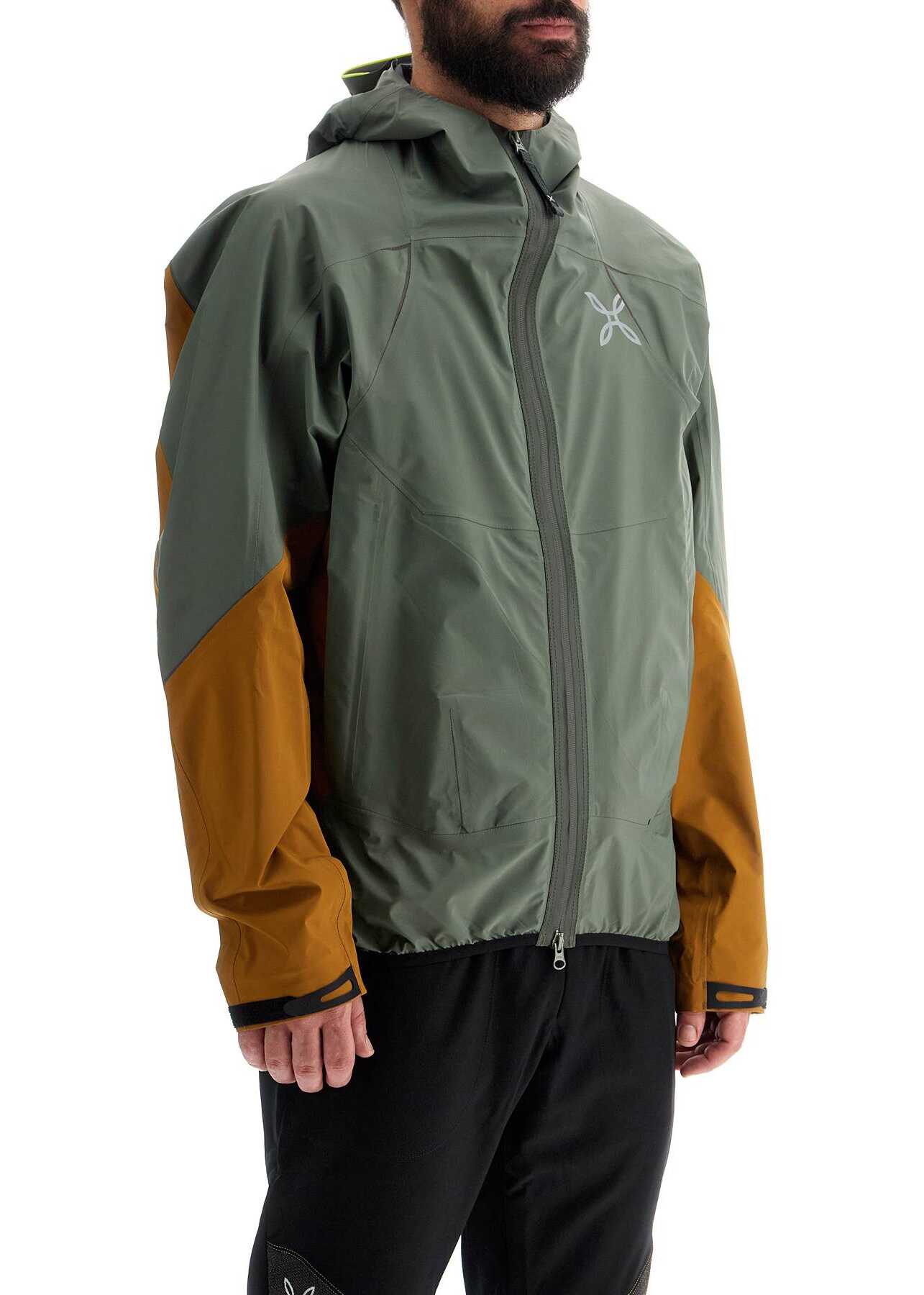 The Magic 2.0 jacket by Montura is made of three-layer Gore-Tex with waterproof and windproof properties, ensuring breathability and comfort. The color-block design is completed with reflective inserts and internal waterproof seams. It features a fixed hood, double-slider zip closure, and concealed zip pockets. The relaxed fit is finished with elastic edges and adjustable cuffs with Velcro straps. Signed with a logo on the chest. The model is 187 cm tall and wears a size L.
