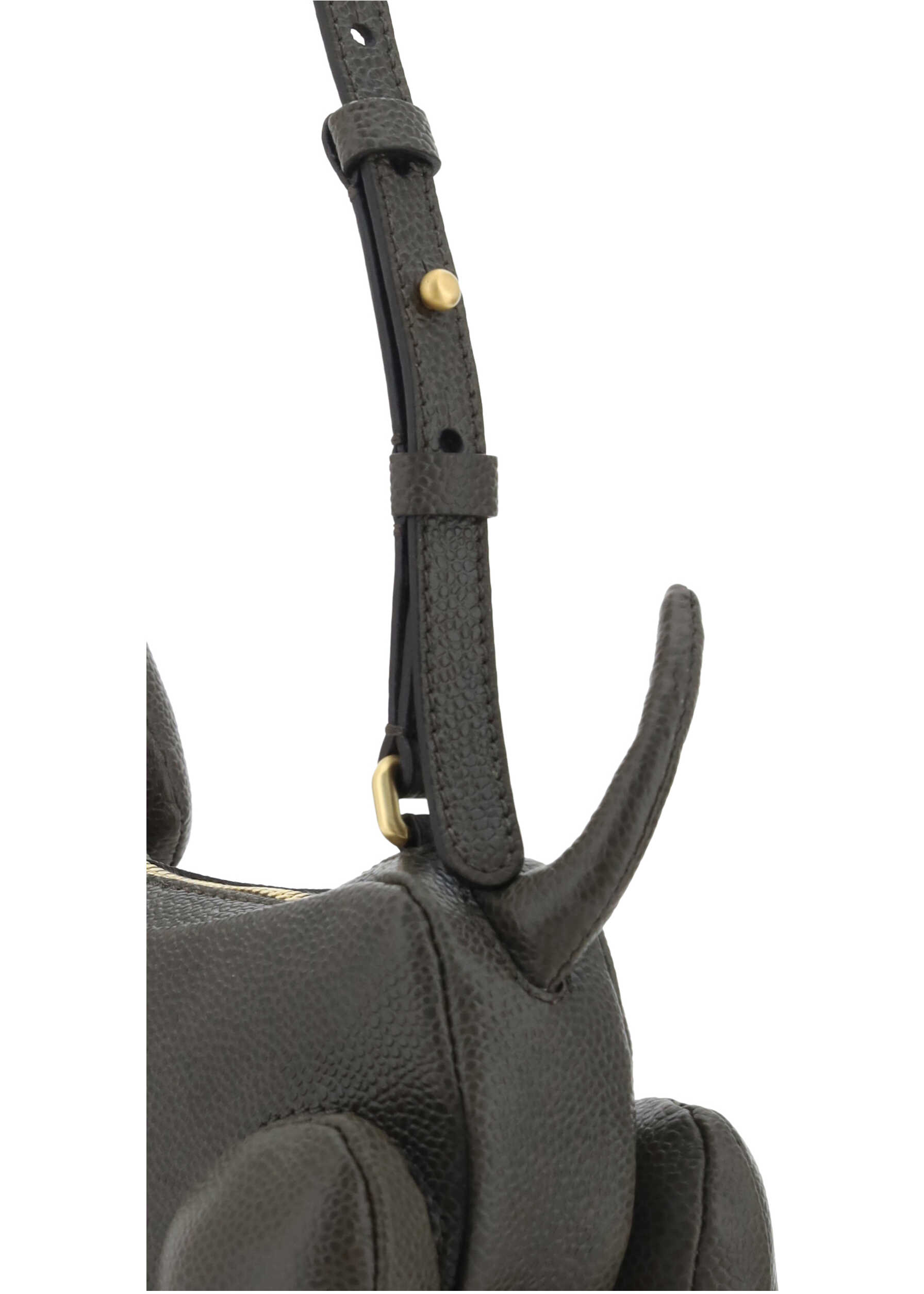 Leather Hector Baguette Shoulder Bag by Thom Browne, grained leather design, adjustable and removable flat shoulder strap, single interior compartment, brand's iconic Hector dachshund shape.