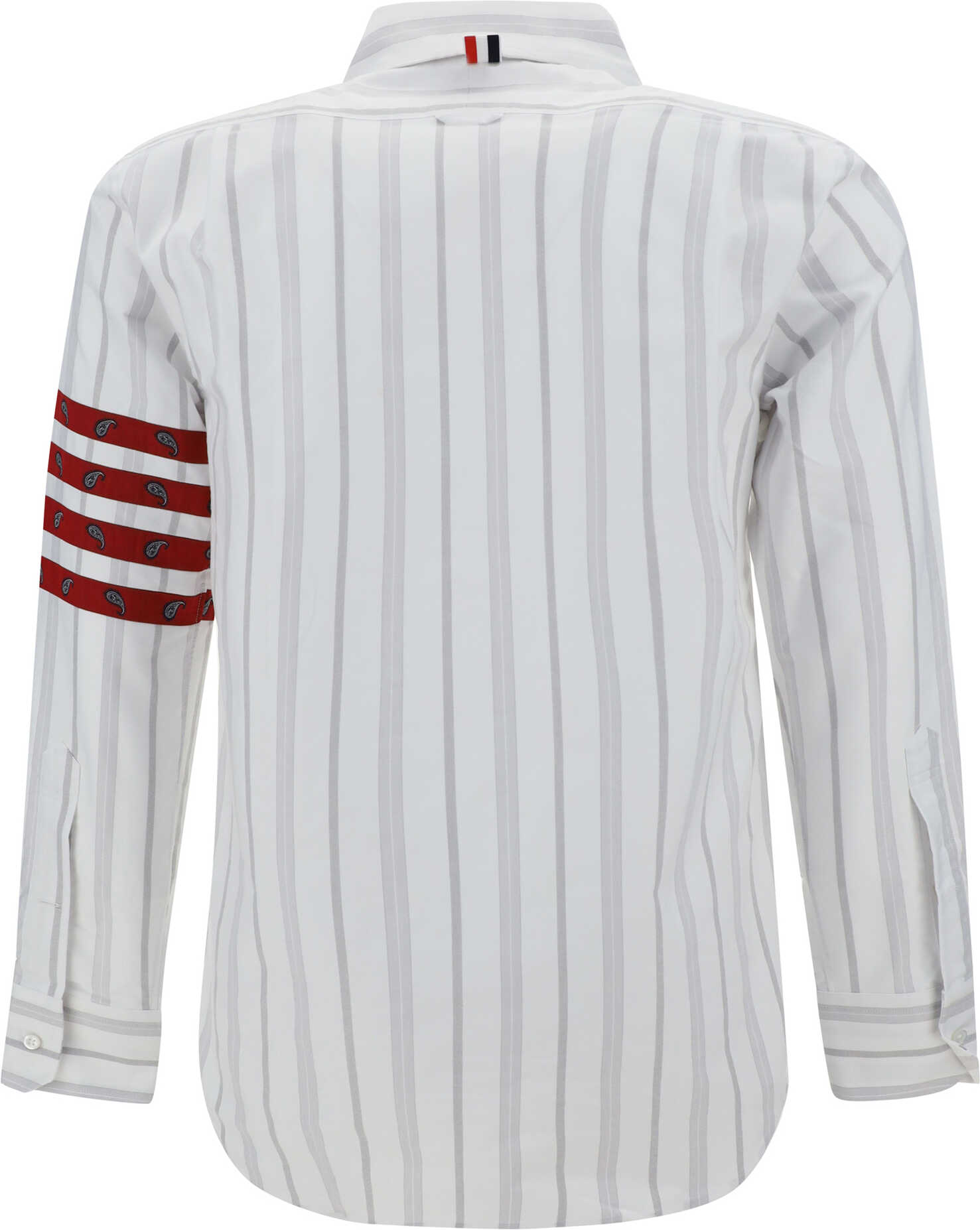 Silk shirt from Thom Browne featuring a classic collar, a front button closure, a striped design, the brand's iconic patterned bands on the left sleeve, a patch pocket on the front, and a regular fit.