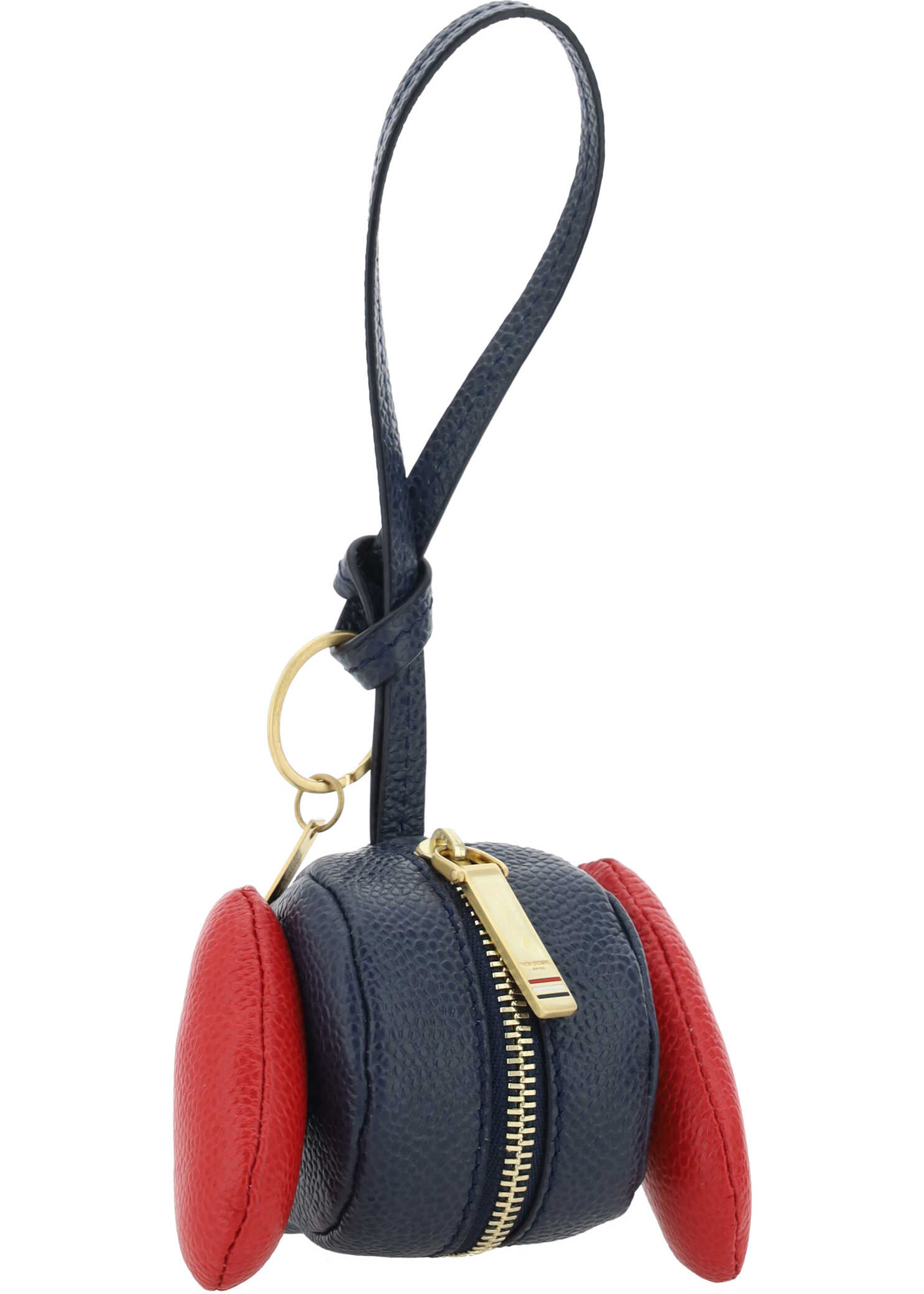 Leather Hector Key Chain by Thom Browne, grained leather design, zipper closure at back.