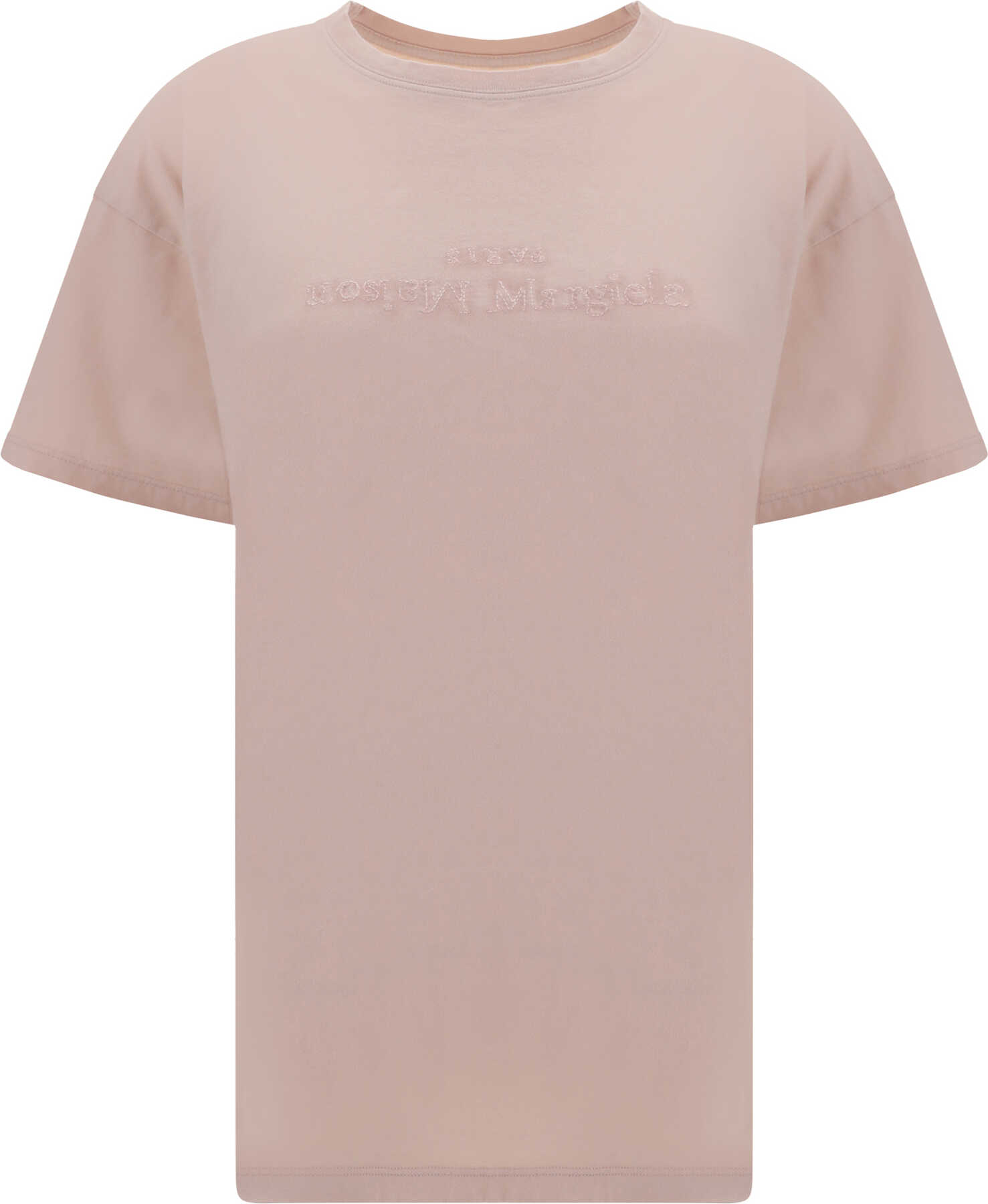 Cotton T-shirt by Margiela, ribbed crew neck, iconic brand monogram stitched tone-on-tone on front, iconic brand stitching contrasted on back, monochrome pattern, over fit.