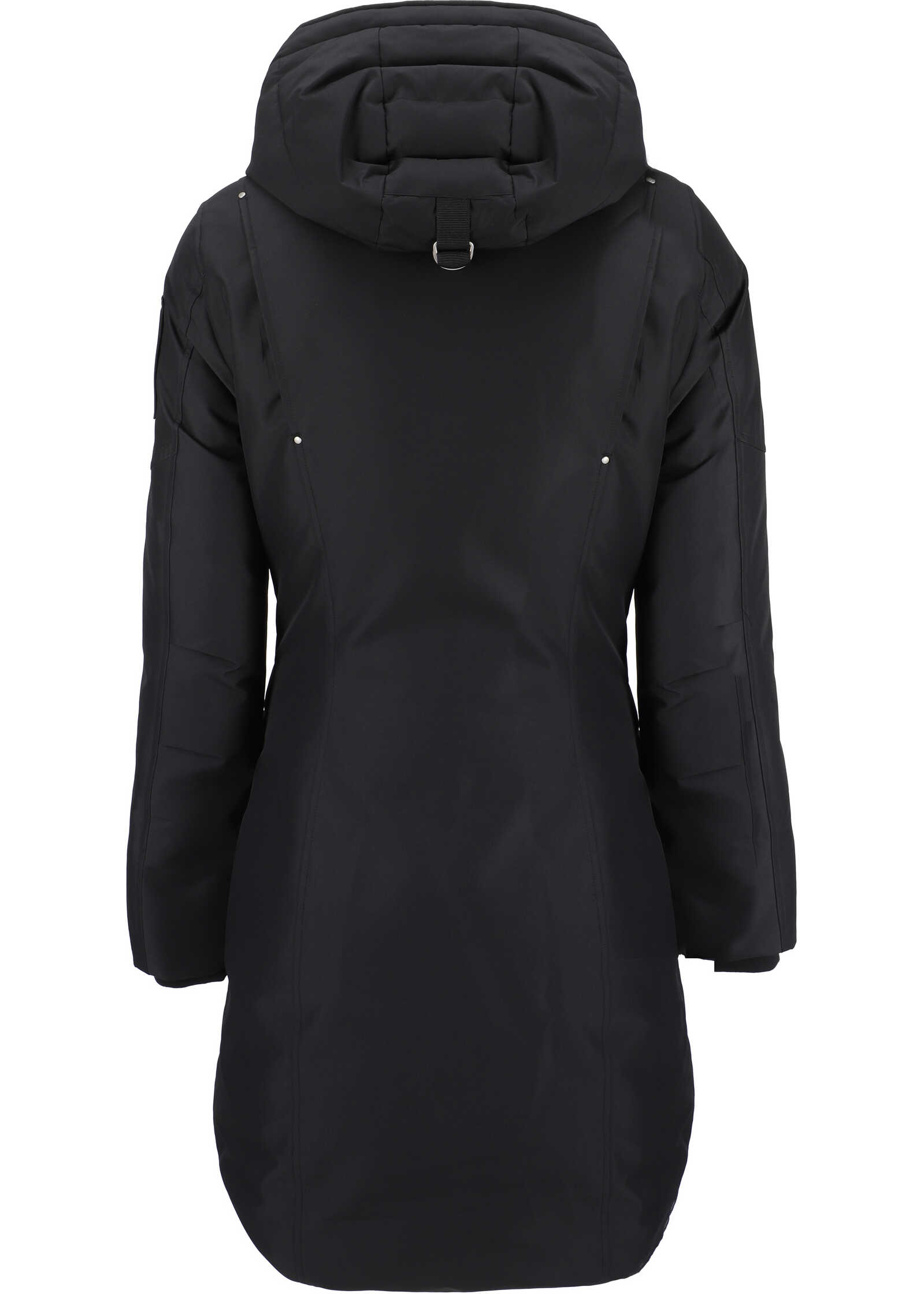 Cloud Parka Coat by Moose Knuckles, high hooded crew neck, front closure with invisible zipper and buttons, four maxi welt pockets on front, elastic ribbed cuffs, iconic brand plaque embossed on left shoulder, padded design.