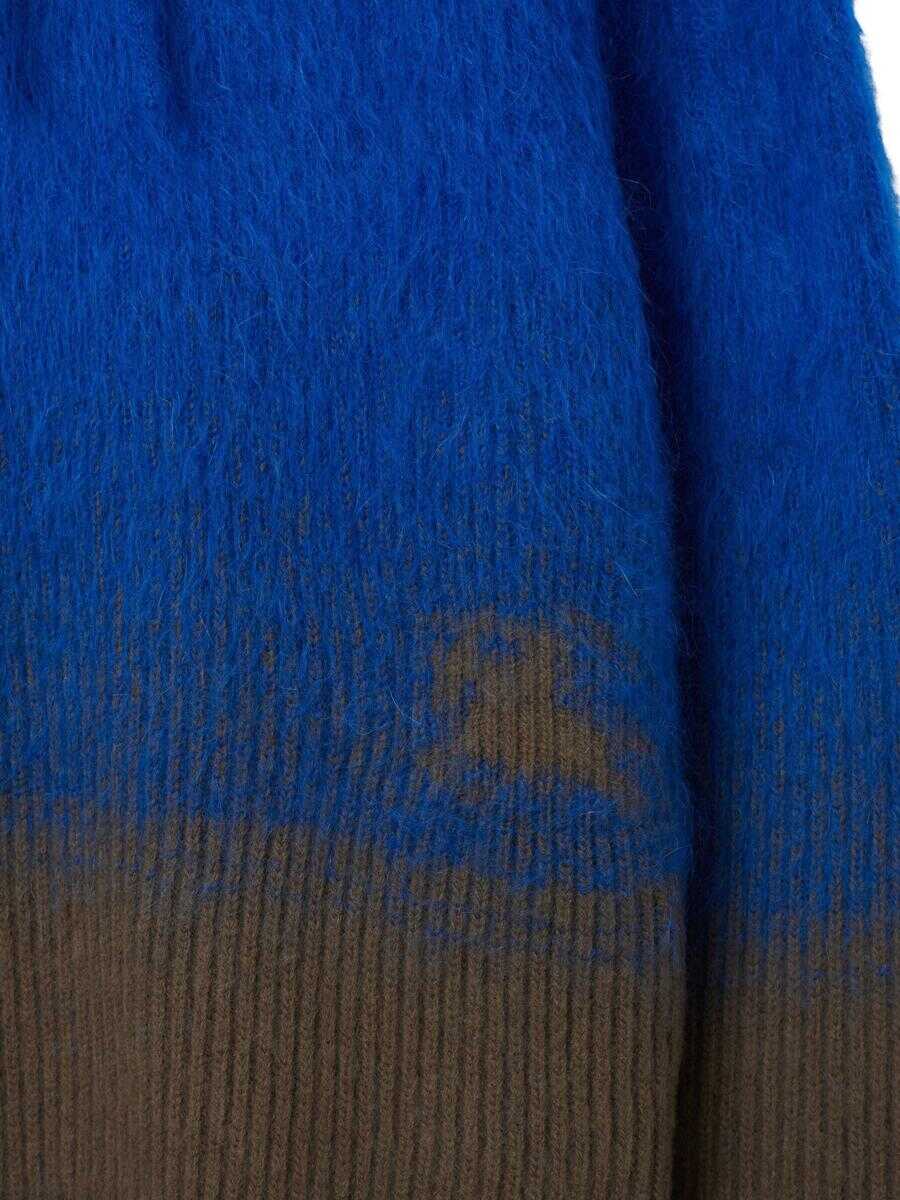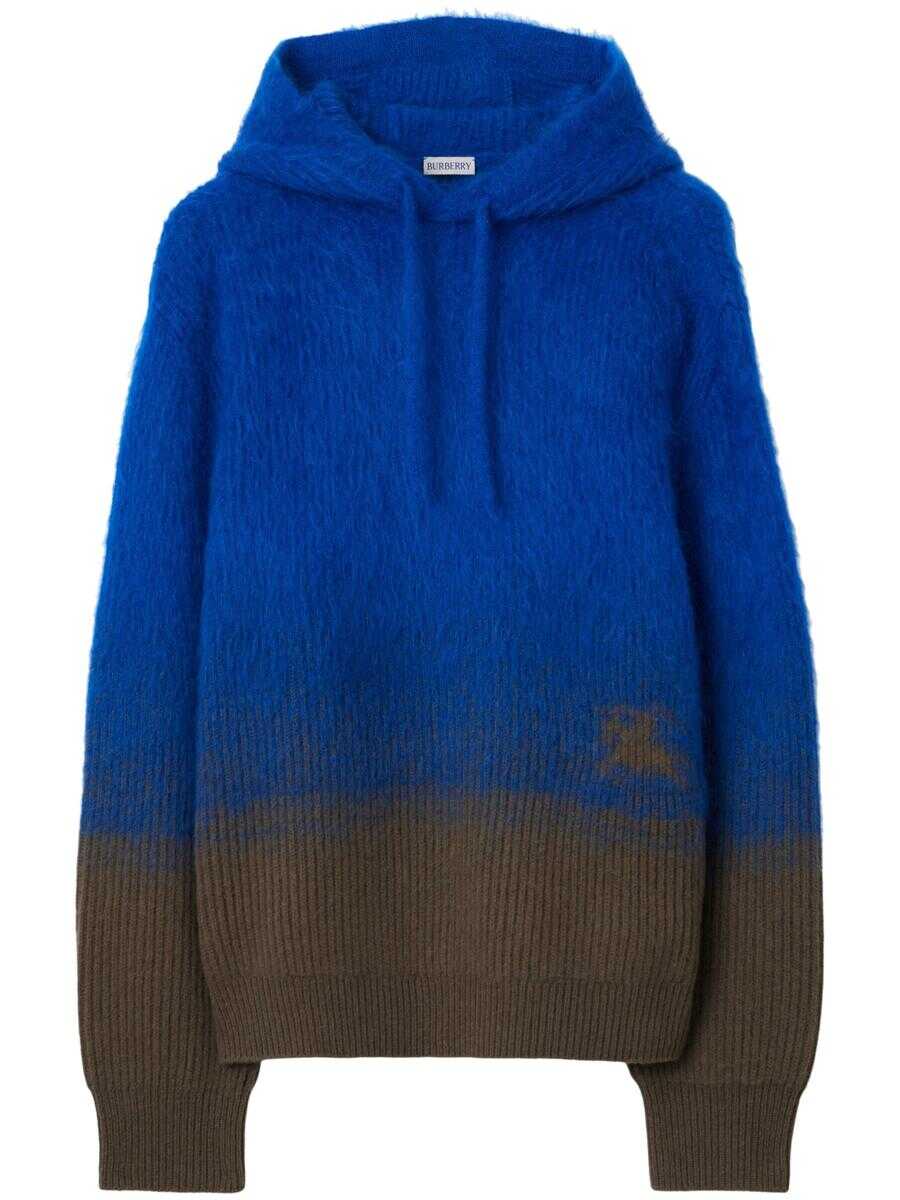 electric blue/brown wool-mohair blend two-tone design classic hood long sleeves ribbed cuffs and hem