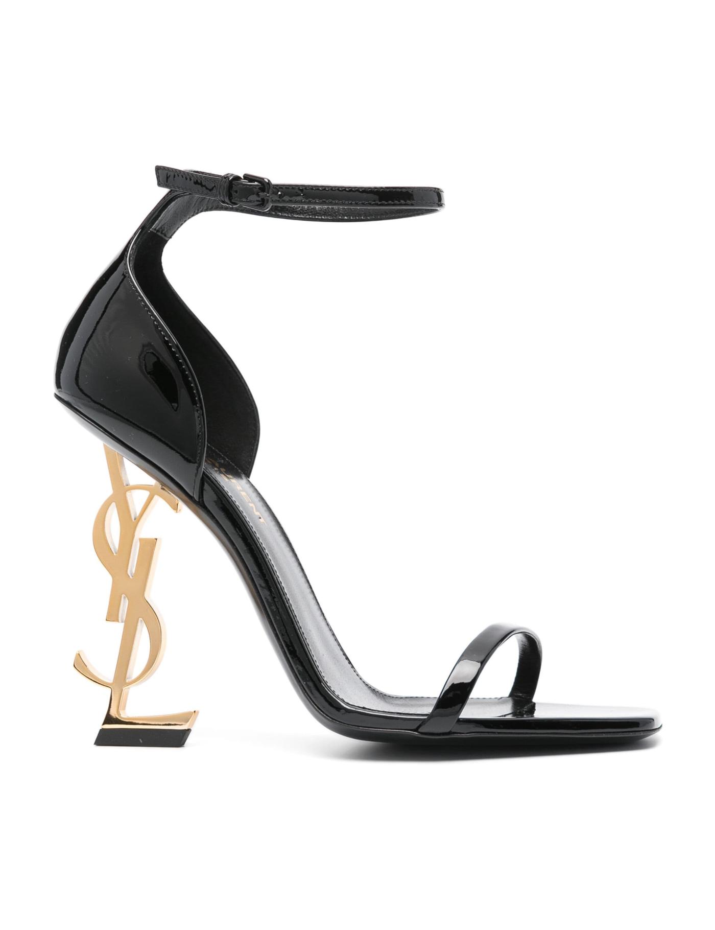 Saint Laurent's Opyum sandals are instantly recognisable thanks to the gold-tone YSL logo plaque that doubles as a sculpted heel. This pair is crafted from black patent leather, in keeping with the brand’s sleek aesthetic.