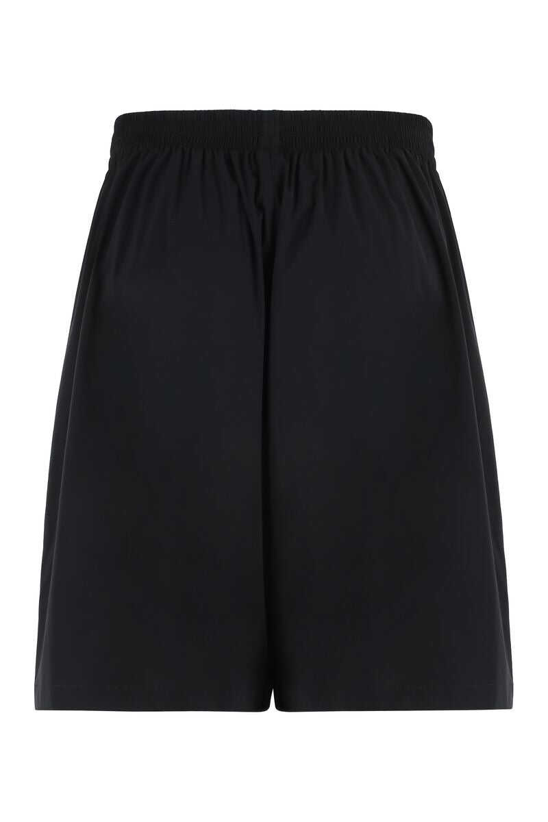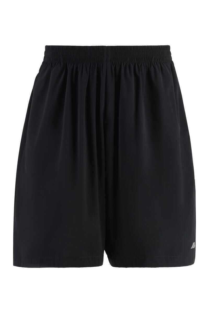 black stretch-design elasticated waistband two side zip-fastening pockets logo print to the front with reflective detailing knee-length internal drawstring fastening waist