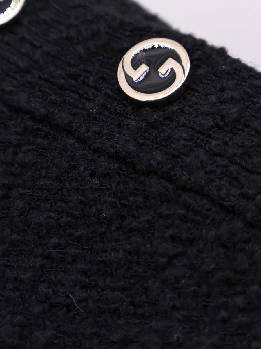 black wool blend textured finish button fastening at the shoulder crew neck short sleeves ribbed cuffs and hem