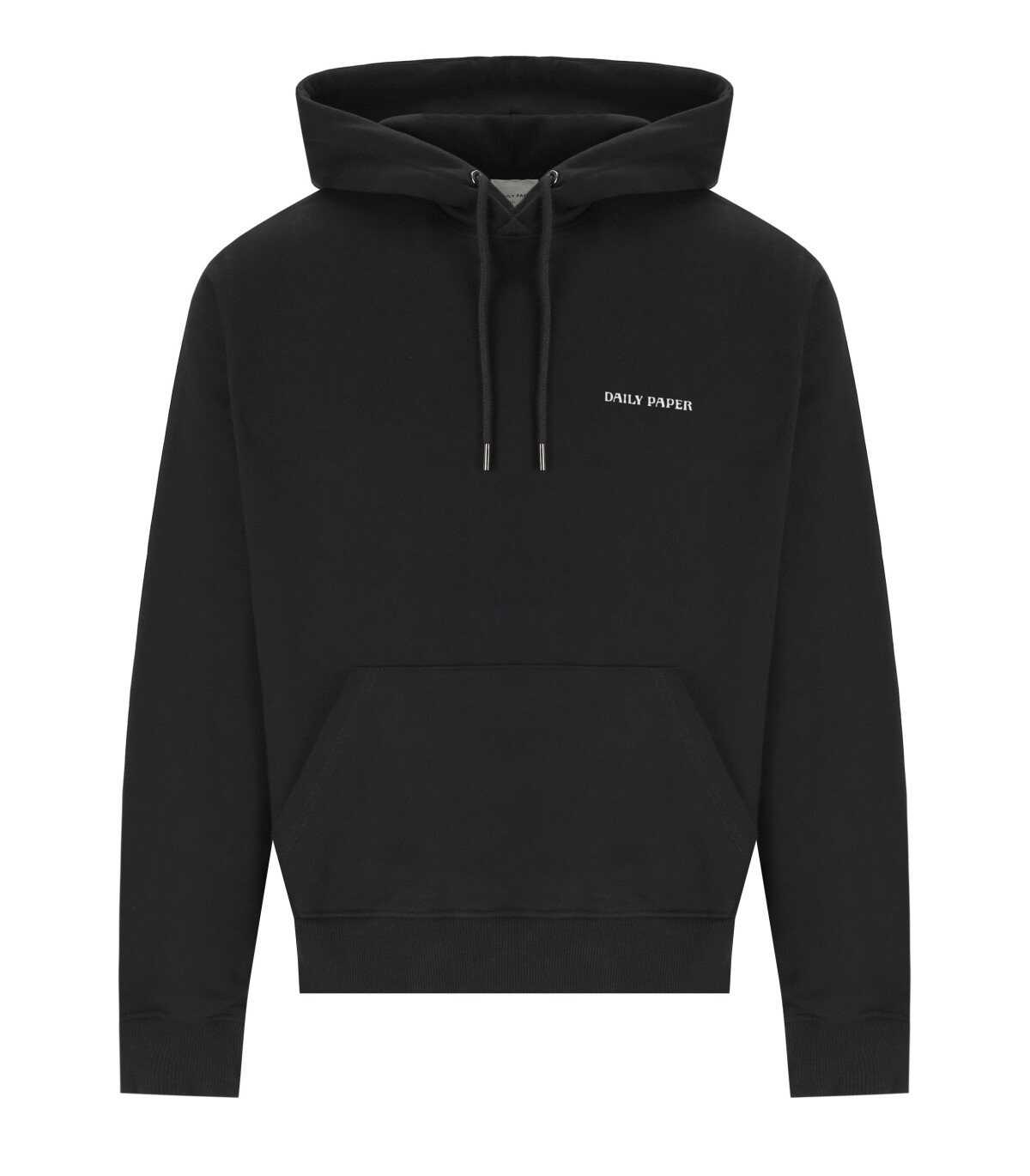Dias HD hoodie by Daily Paper made of black cotton with brushed interior. Hood with drawstring and kangaroo pocket. Contrast logo on the chest, ribbed cuffs and hem. Relaxed fit.