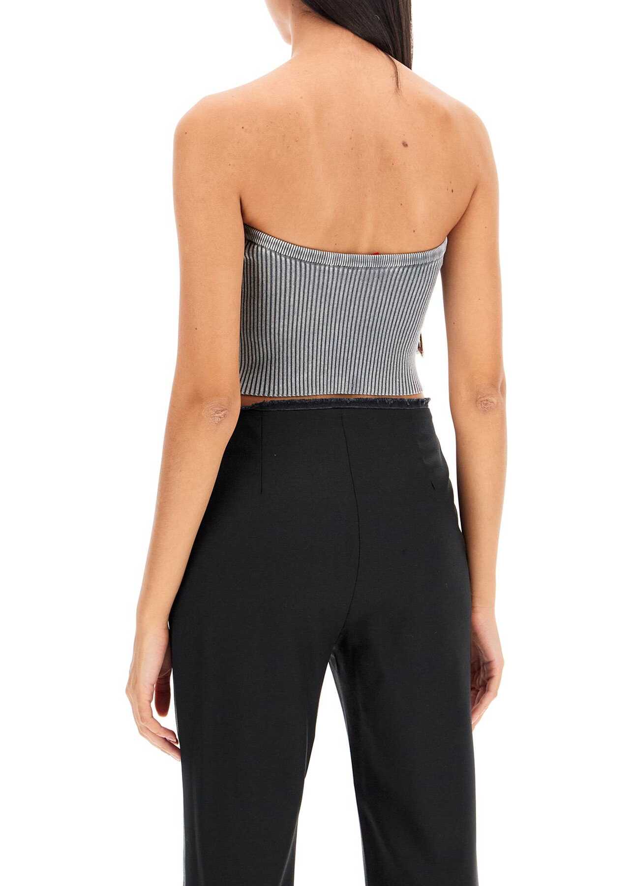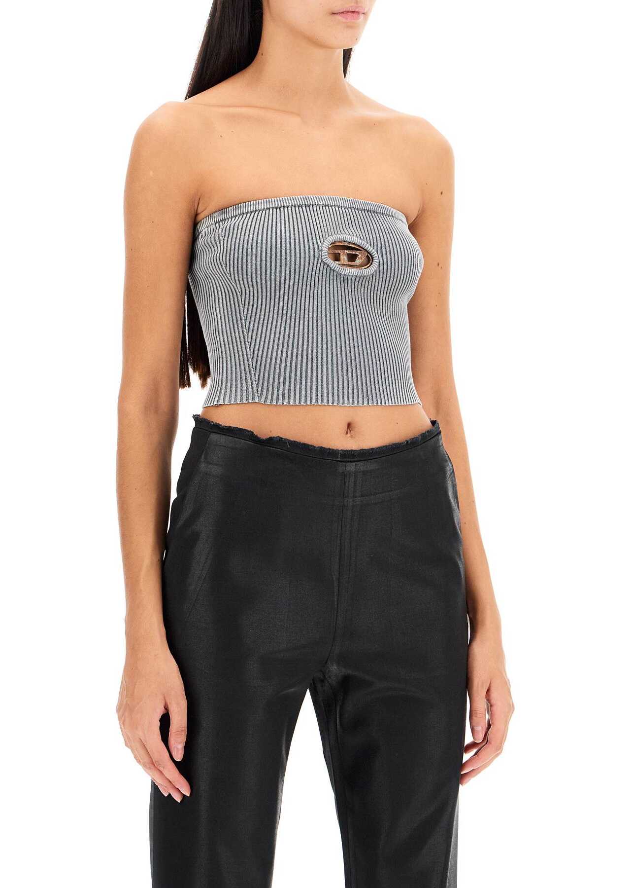 The M-Clarksvillex top by Diesel is made of ribbed cotton blend fabric and features the iconic rust-effect Oval D, created through innovative digital printing. The model is 177 cm tall and wears size XS.