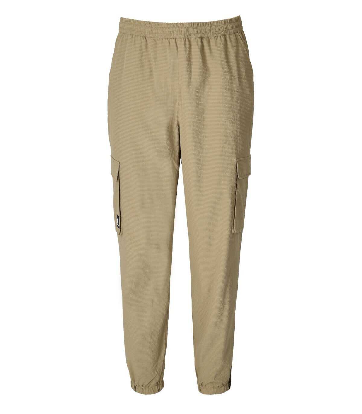 Daily Paper Peyisai track pants made of beige textured nylon with mesh lining, featuring cargo pockets, one of which with a rubberized logo patch. Elasticated waist with drawstring and slits with zip on the bottom. Regular fit.