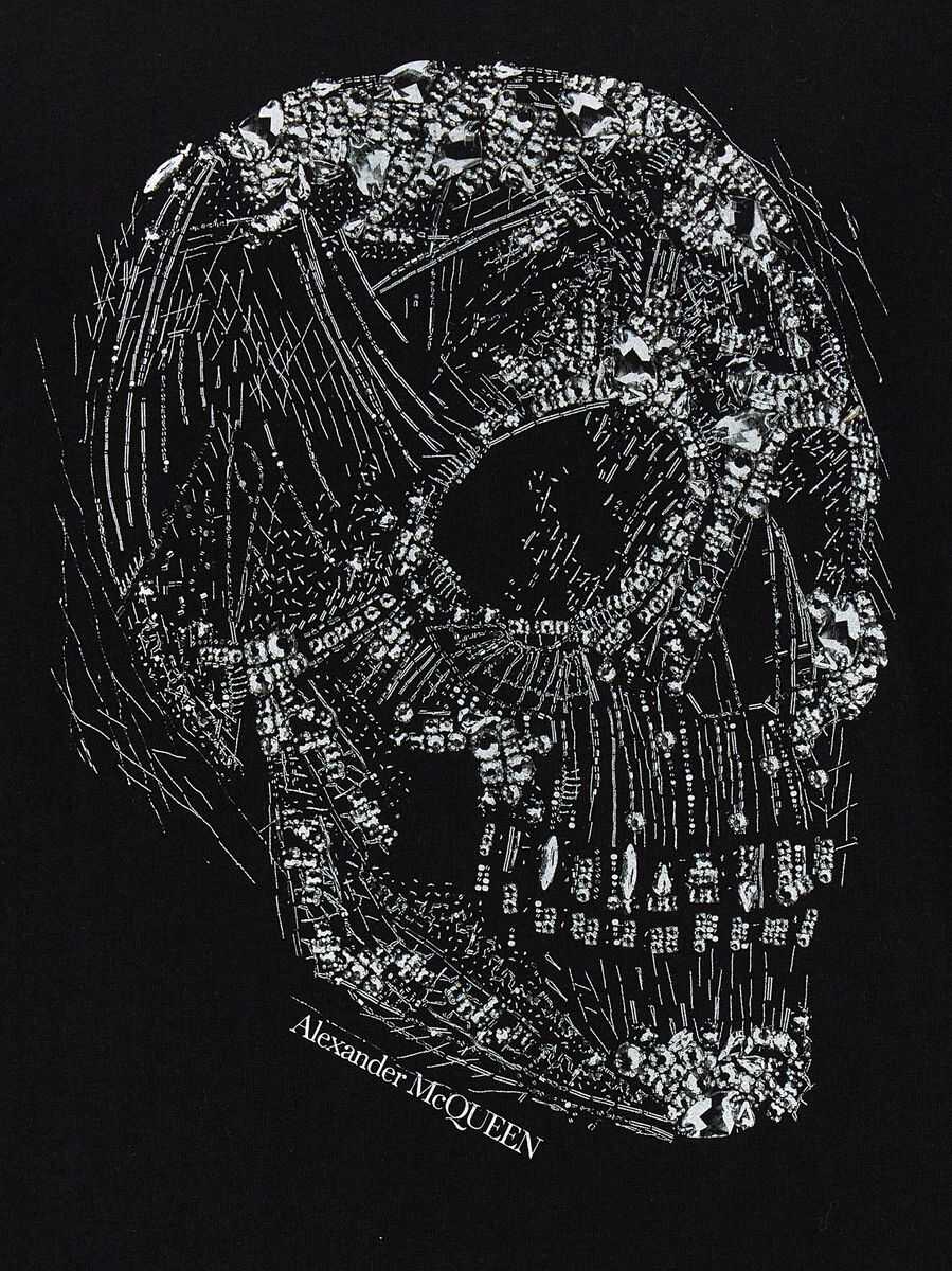 black cotton jersey knit skull print crew neck short sleeves straight hem