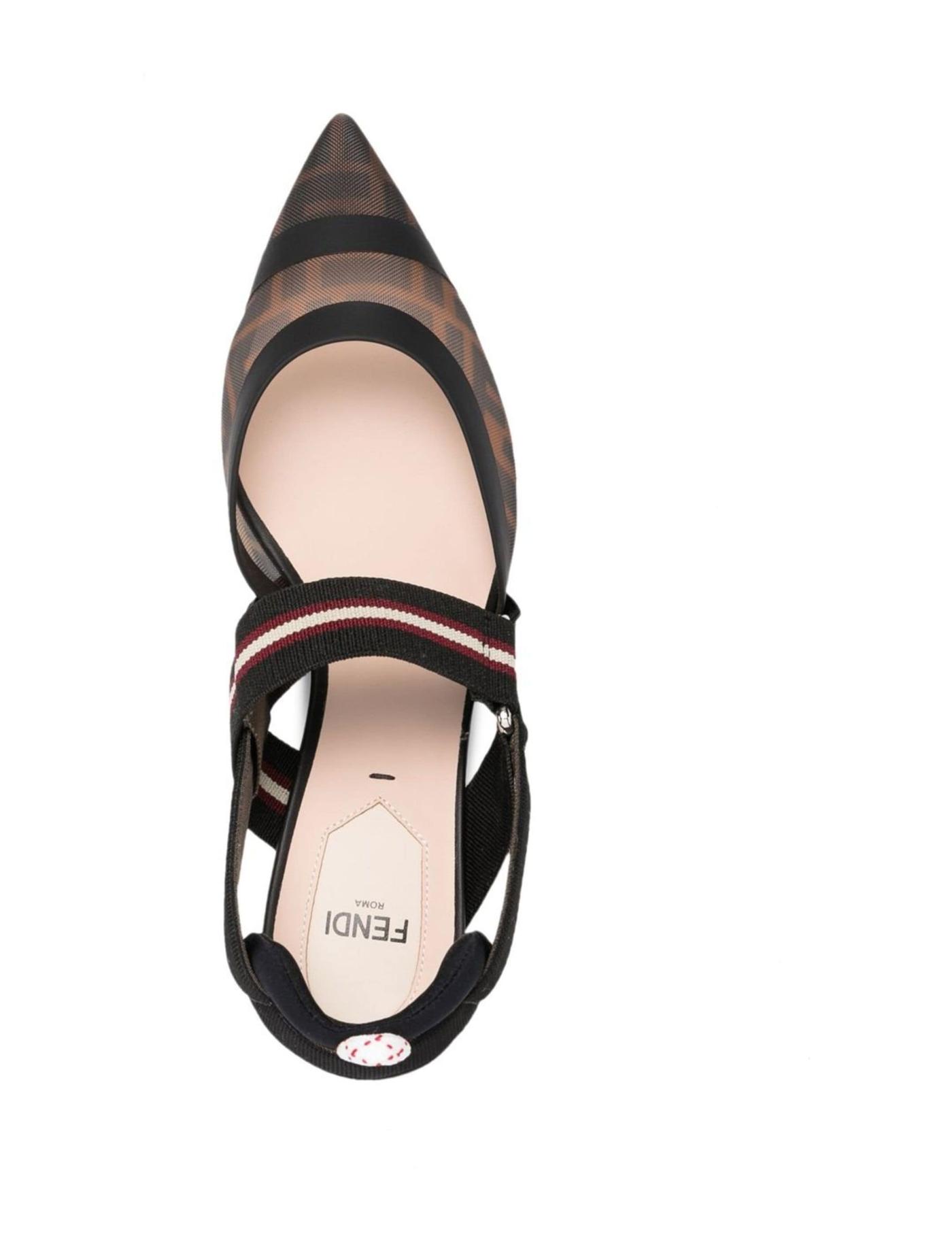 Fendi's hybrid design combines a sleek pointed-toe silhouette with sportswear-inspired grosgrain straps for a contemporary finish. The Colibri pumps are further accented with a mesh upper embellished with a refined FF pattern.