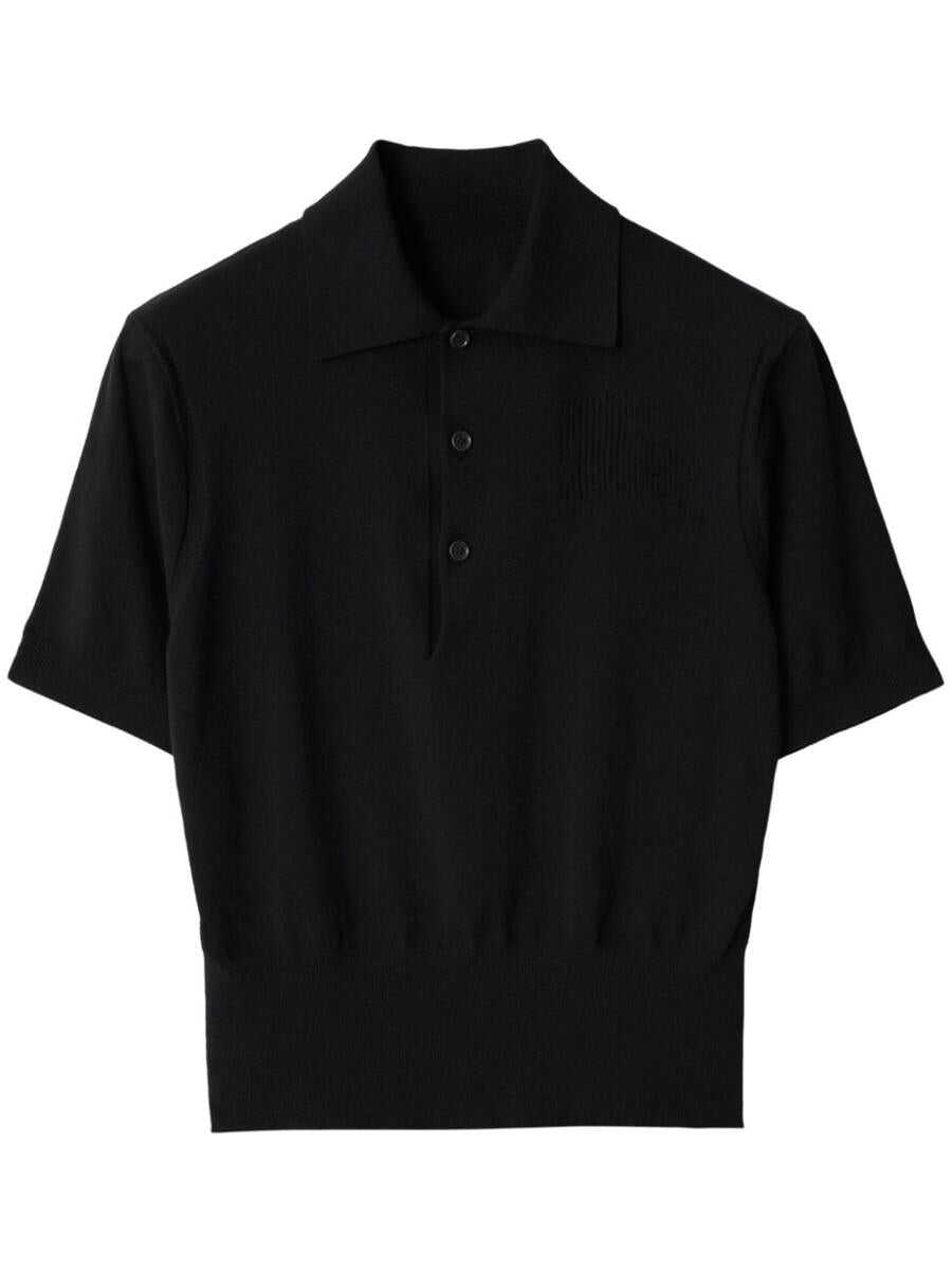 black cotton blend straight-point collar front button placket short sleeves straight hem