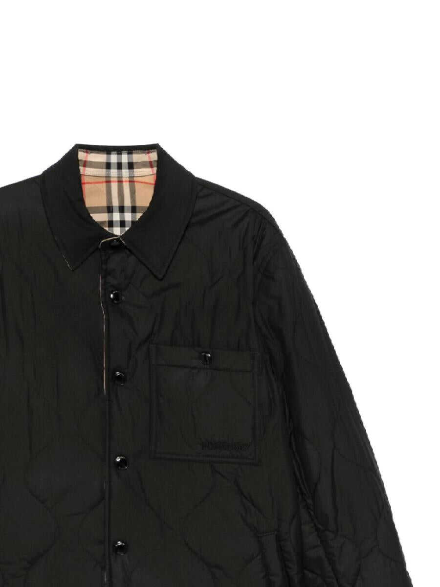 black quilted reversible front press-stud fastening classic collar long sleeves chest patch pocket embroidered logo at the chest two press-stud fastening side pockets straight hem Vintage Check-pattern lining We've partnered with Good On You — an independent agency that rates how brands perform in relation to their impact on the planet, people and animals, with a multi-criteria rating simplified to a five points scale. In order to be awarded our conscious label, larger brands need to score a minimum of four out of five ('Good'), while smaller brands must score at least three out of five ('It's a start'). This item comes from a brand rated five out of five ('Great') by Good on You at the time it was added on FARFETCH. Please note, this is a brand-level rating and does not guarantee that this product is made with conscious materials. Learn more about what makes a product Conscious on our Conscious Criteria page