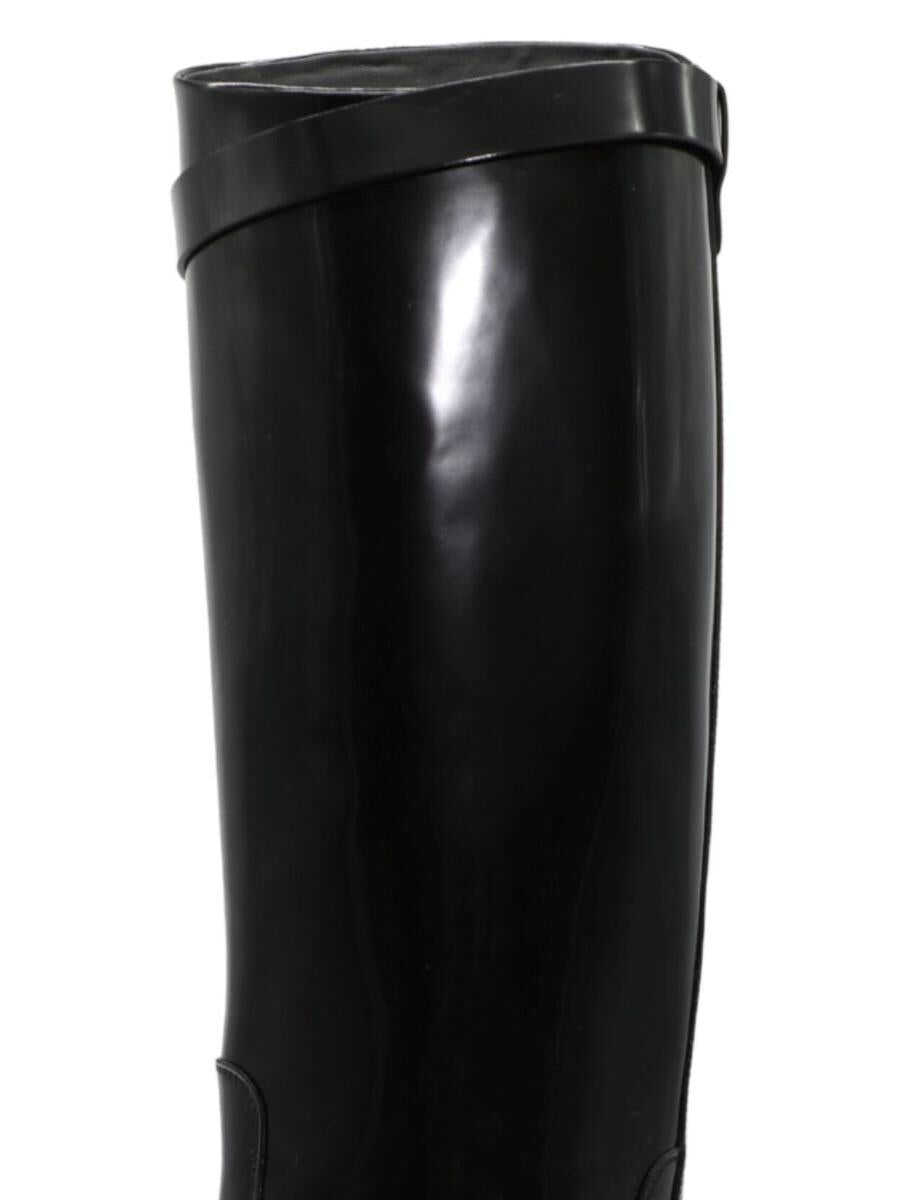black calf leather silver-tone logo plaque pull-on style tonal stitching low heel branded leather insole rubber sole