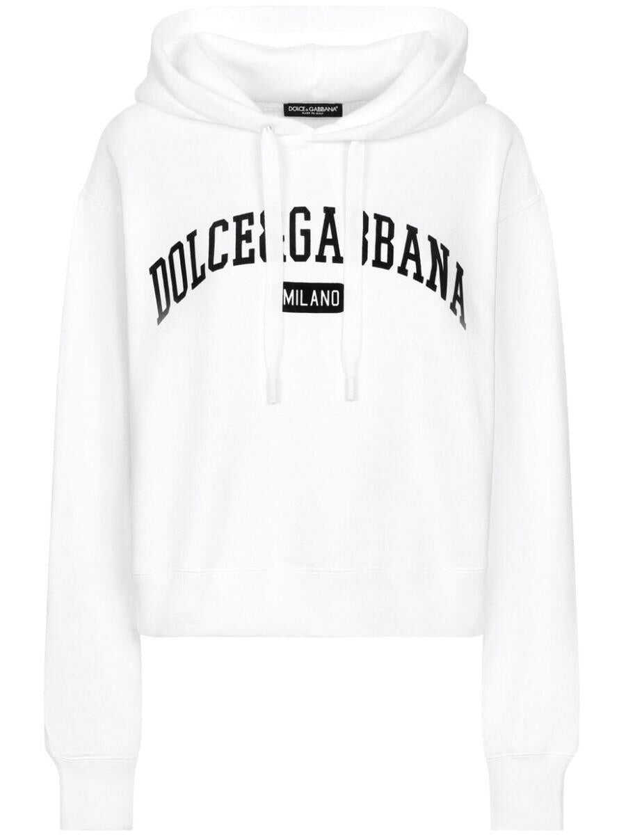 white cotton logo print at the chest drawstring hood drop shoulder long sleeves straight hem ribbed trim
