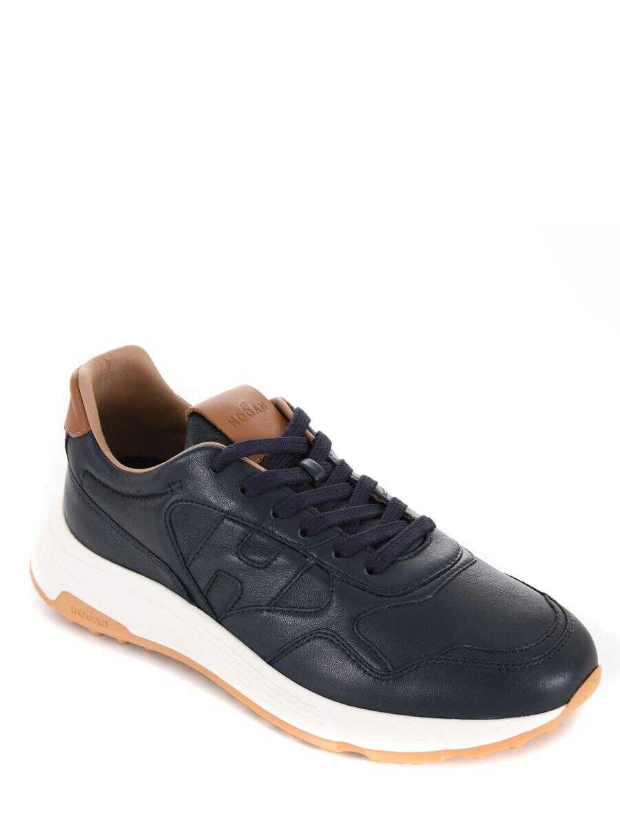 Hogan sneakers in blue nappa. Leather insert on the back. Tone-on-tone "Hogan" lettering on the tongue. Tone-on-tone H on the side. Memory foam insole. 40 mm rubber sole. Made in Italy