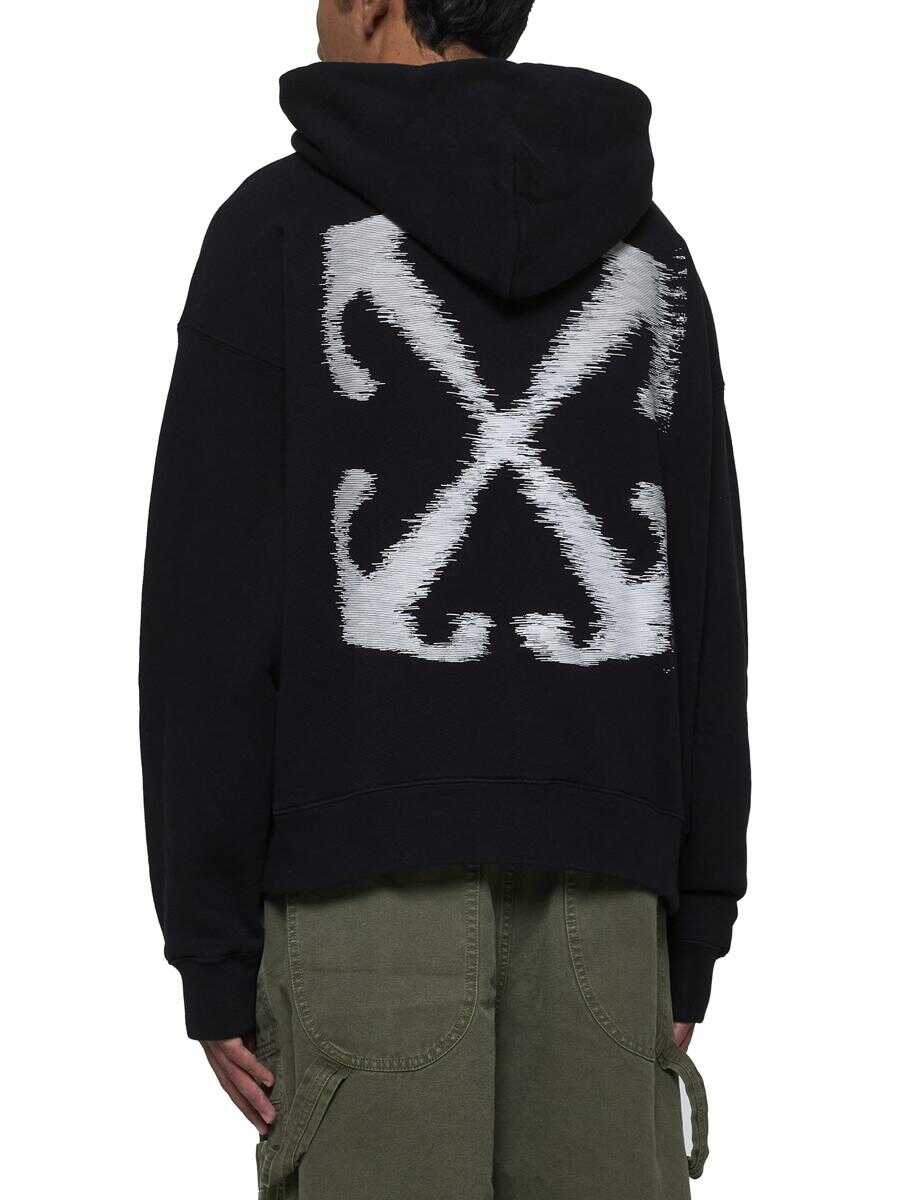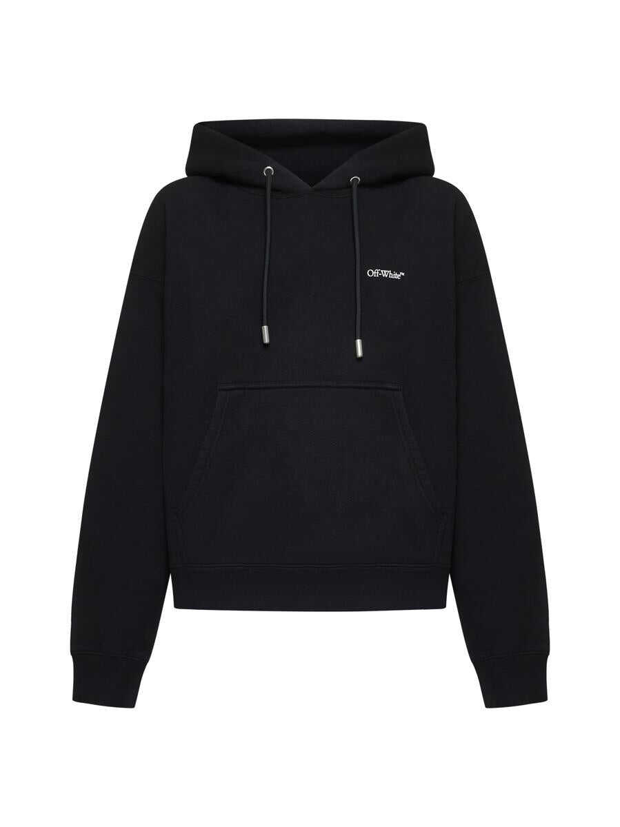 Off-White’s black cotton skater-fit hoodie featuring an adjustable drawstring at the hood, dropped shoulders, logo printed on the chest, front kangaroo pocket, Windy Arrow logo printed on the back and ribbed edges.