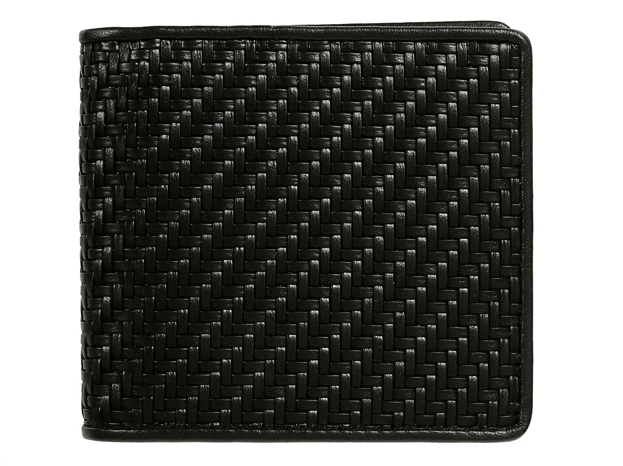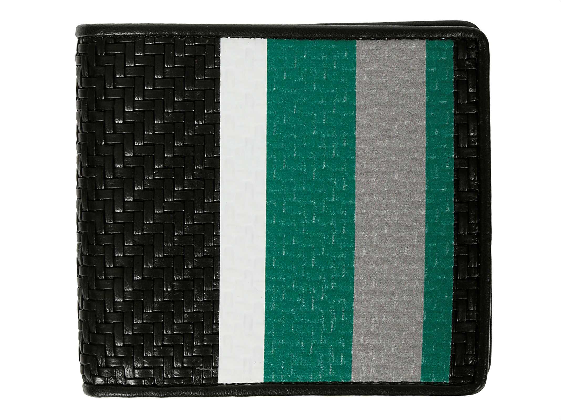 Ermenegildo Zegna Black leather wallet, green, white and gray insert, card holder, banknote holder, logo detail.