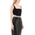 This Marc Jacobs crop top is made of pure cotton denim with a dark wash, featuring a bustier design with internal boning seams. It has a wide square neckline, hidden hook and eye closure at the back, and a shaped hemline. The model is 177 cm tall and wears a US size 4.