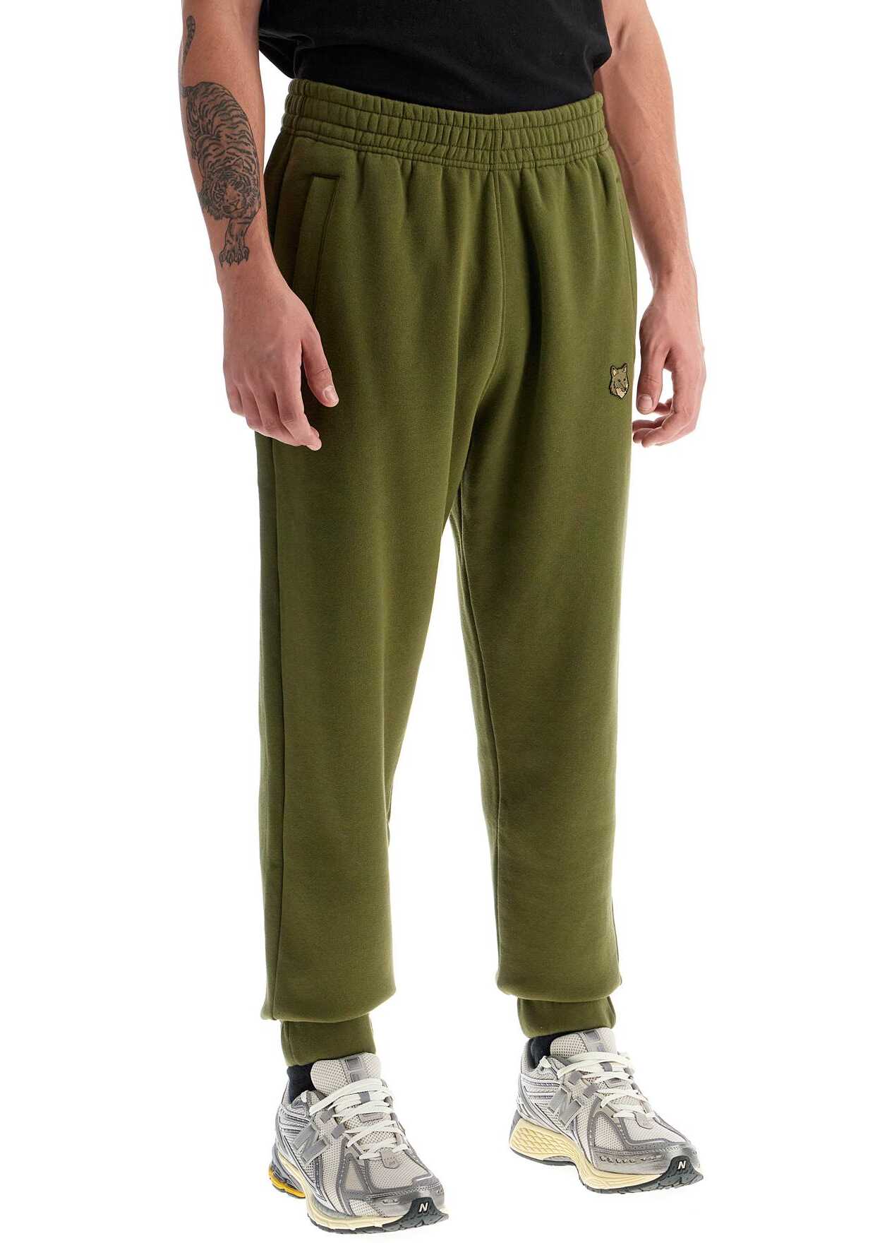 Maison Kitsuné joggers in soft cotton fleece with embroidered Bold Fox Head application. Featuring side welt pockets, they have elasticated waistband and cuffs. Internal drawstring at the waist. The model is 182 cm tall and wears size L.