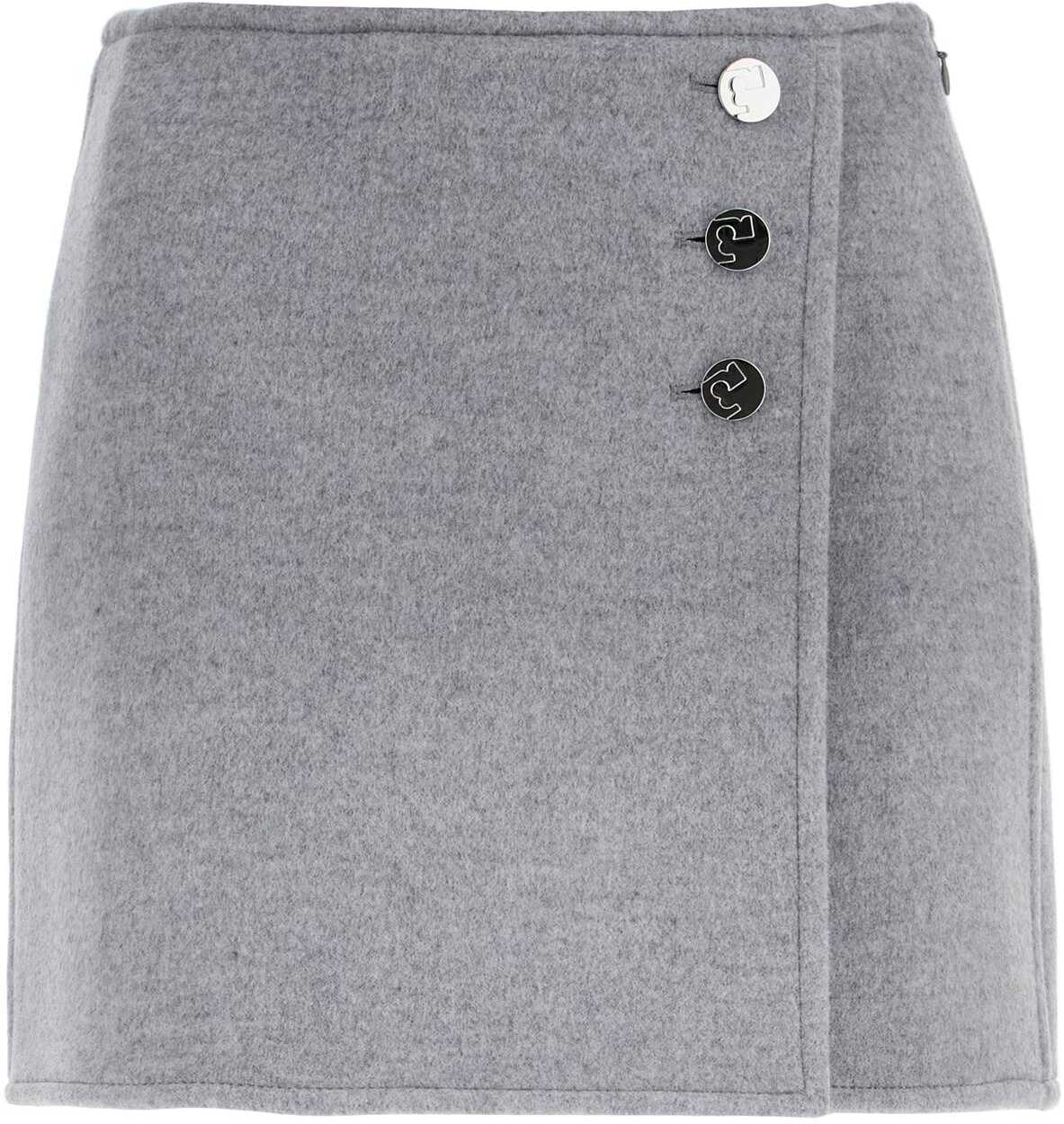 This mini skirt by Tory Burch is made of brushed double-faced wool, with the inside adorned with the iconic T Monogram all-over pattern. It features a wrap closure with three buttons and an invisible side zip. The model is 177 cm tall and wears a US size 2.