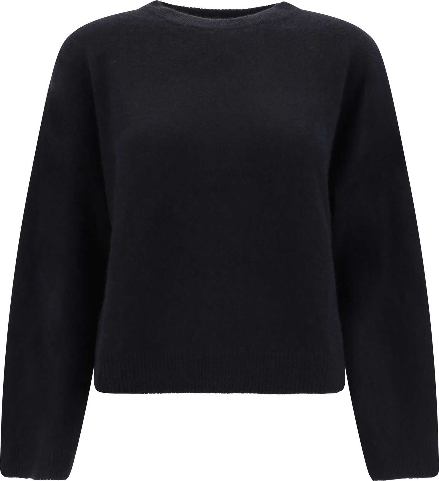 Wool Sweater by LouLou Studio, ribbed crew neck, ribbed cuffs, ribbed hem, iconic brand logo embroidered on front, monochrome pattern, loose fit.