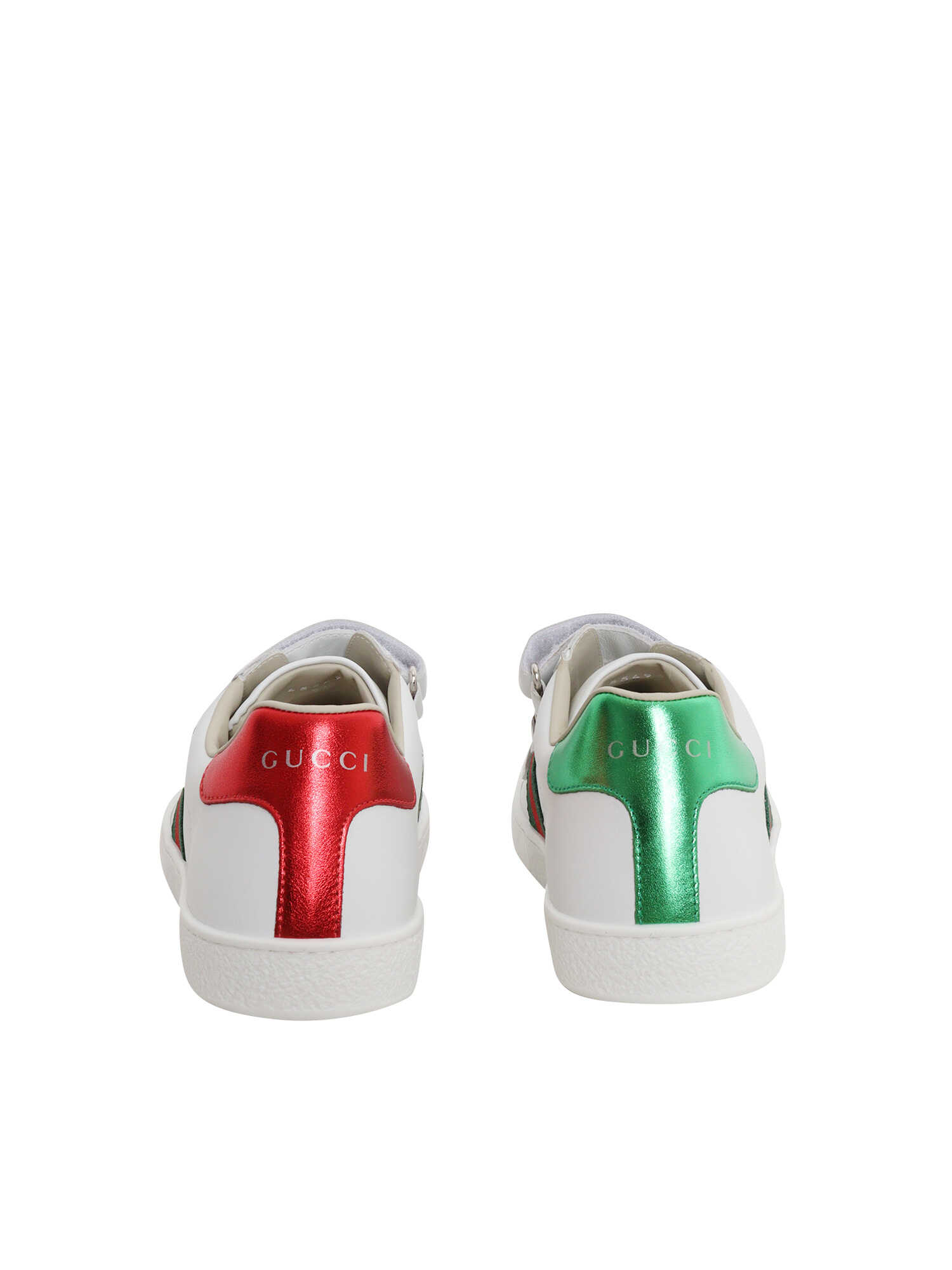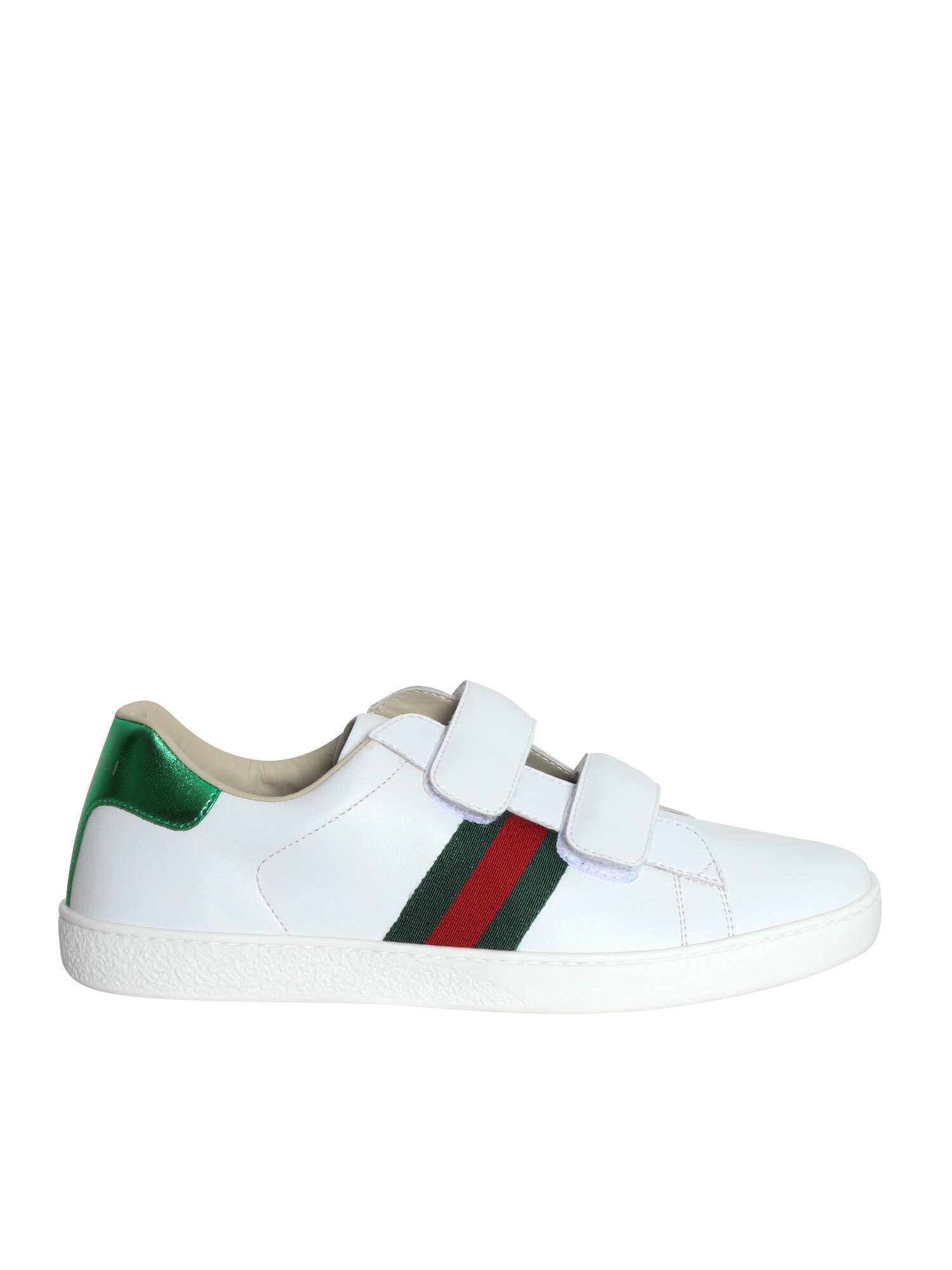 Leather sneakers, double strap fastening, web detail, two-tone laminated heel tab, logo lettering detail