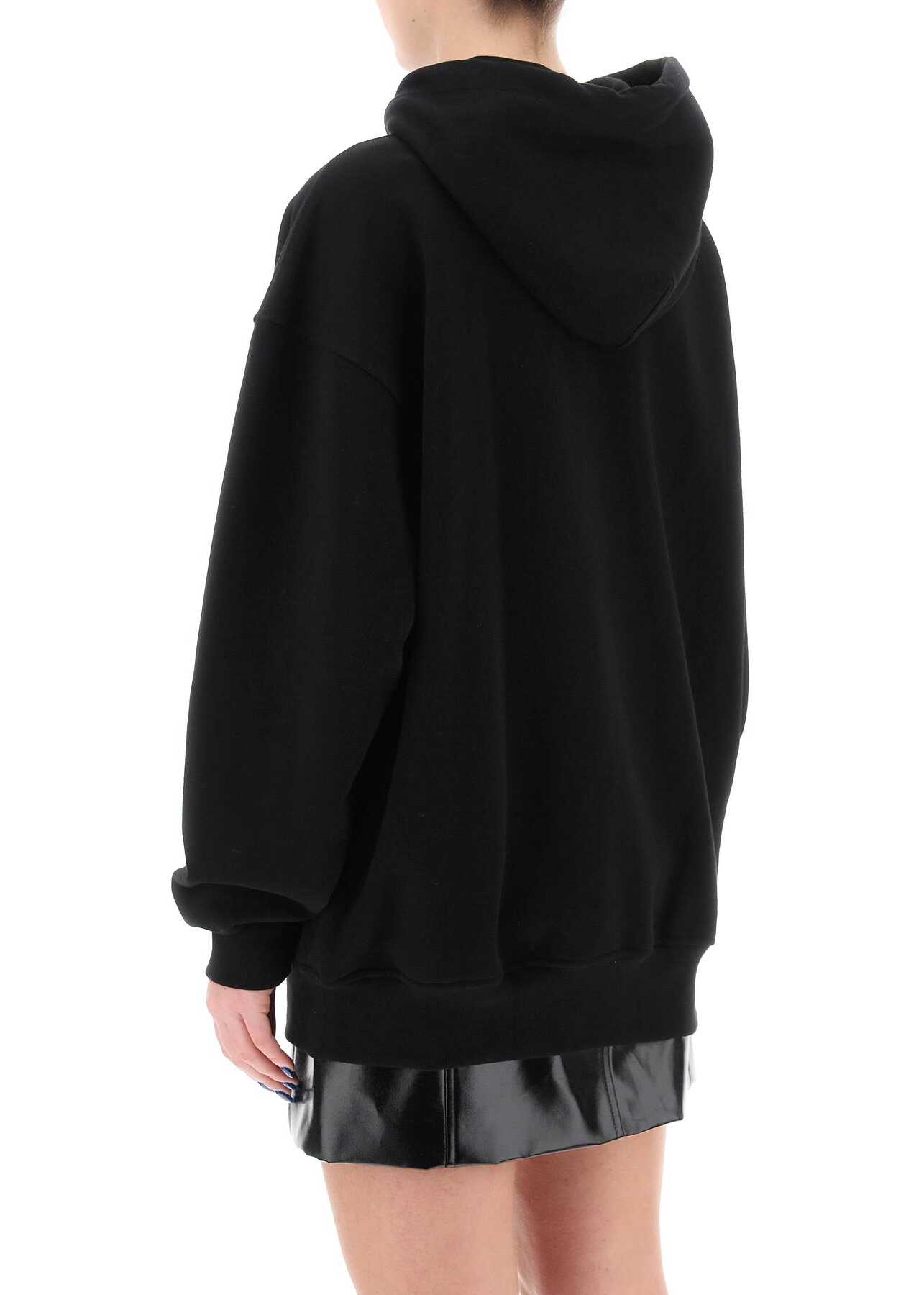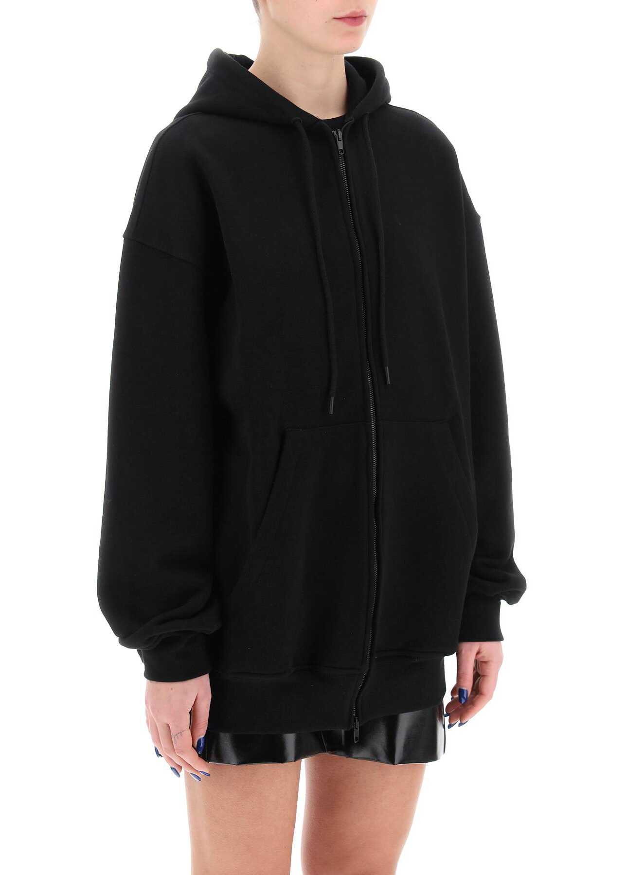 Sweatshirt with an elongated oversized line by WARDROBE.NYC, made from pure cotton french terry. It features adjustable hood with drawstring, two-way zipper closure, split kangaroo pocket and ribbed hem and cuffs. The model is 177 cm tall and wears size XS.